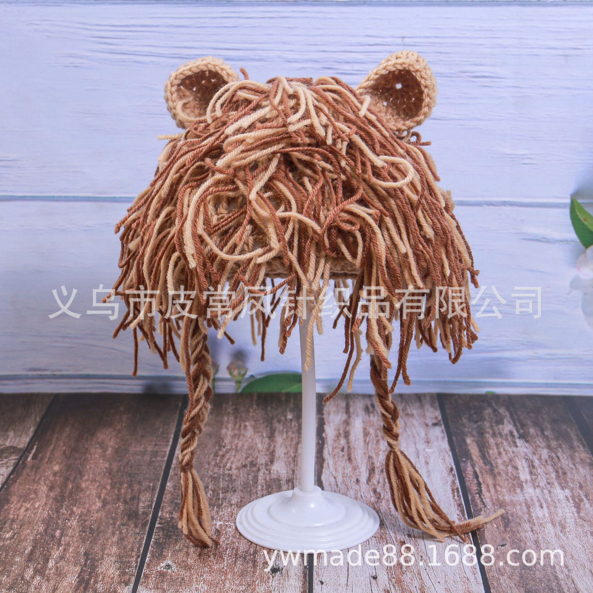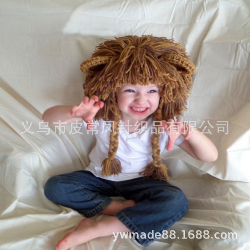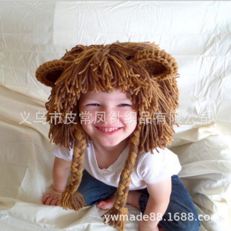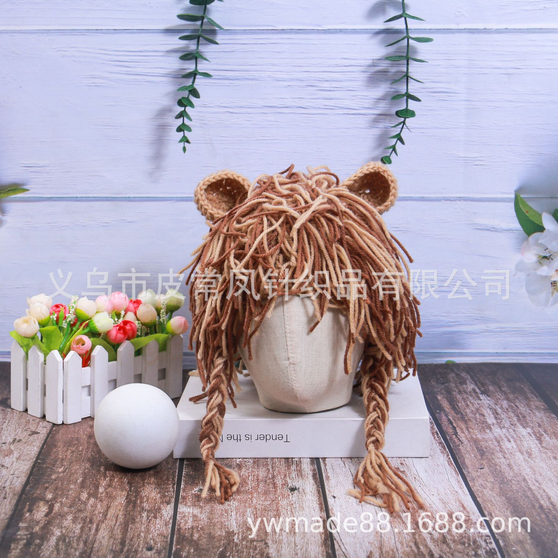 2022 아마존 뜨거운 판매 사자 모자 키즈 웃긴 양모 모자 아기 귀여운 원피스 겨울 따뜻한 모자