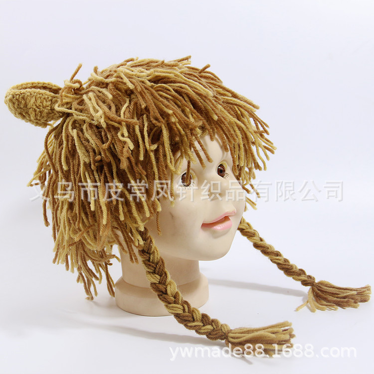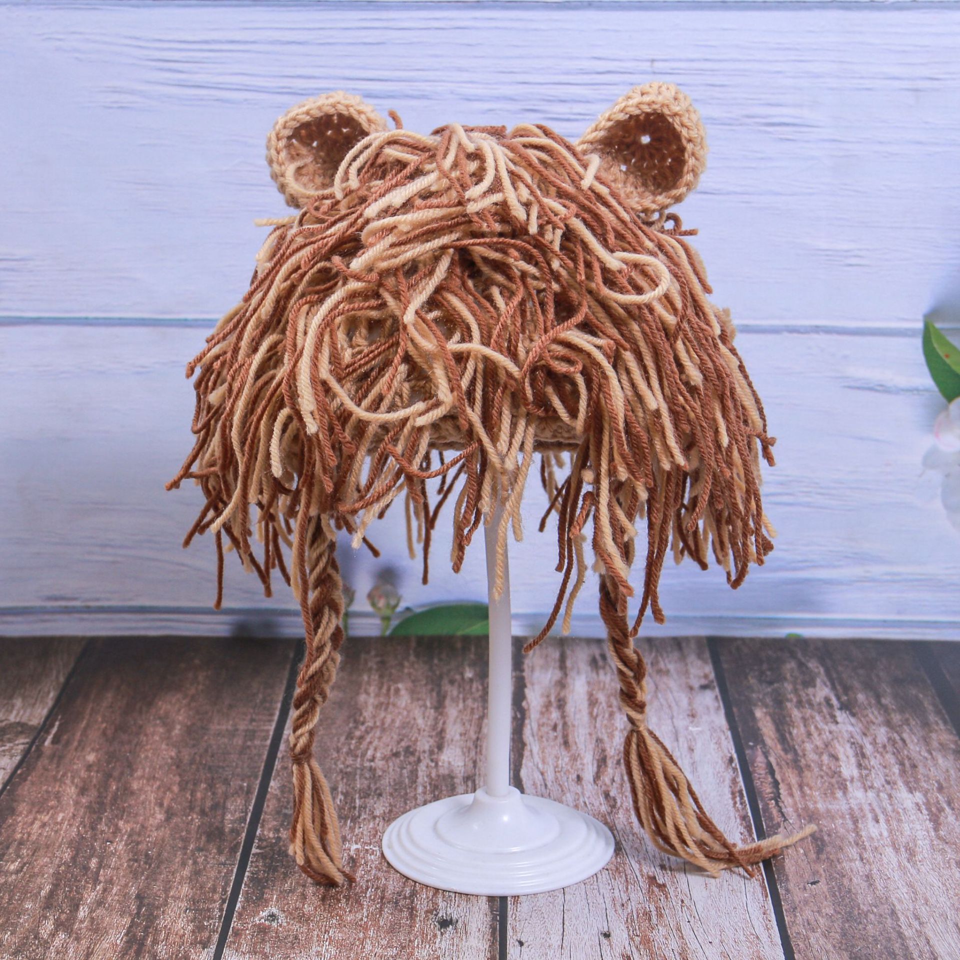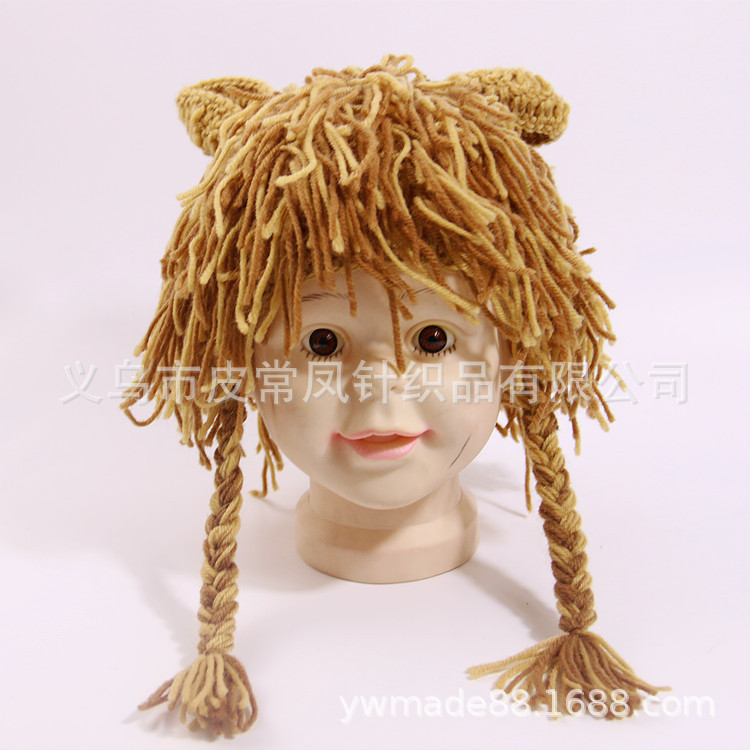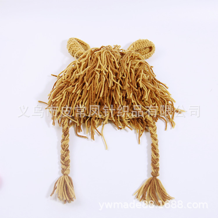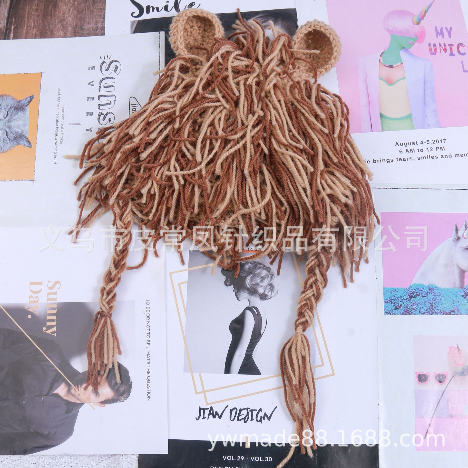 2022 아마존 뜨거운 판매 사자 모자 키즈 웃긴 양모 모자 아기 귀여운 원피스 겨울 따뜻한 모자