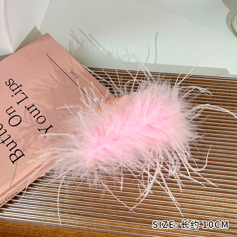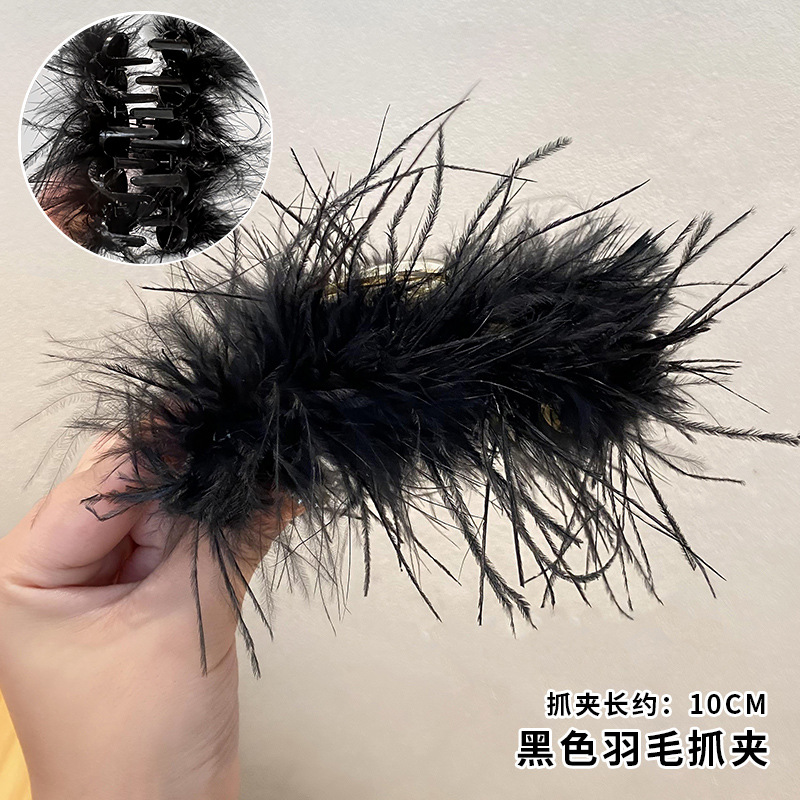 블랙 고급스러운 털집게, 타조털 헤어핀, 헤어볼 장식, 대형 깃털 헤어핀, 헤어볼 장식, 헤어 액세서리, 헤어볼 장식, 대용량 헤어핀, 샤크클립