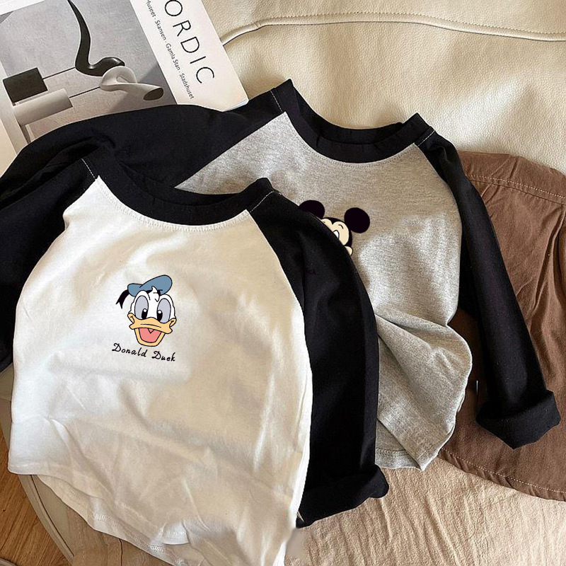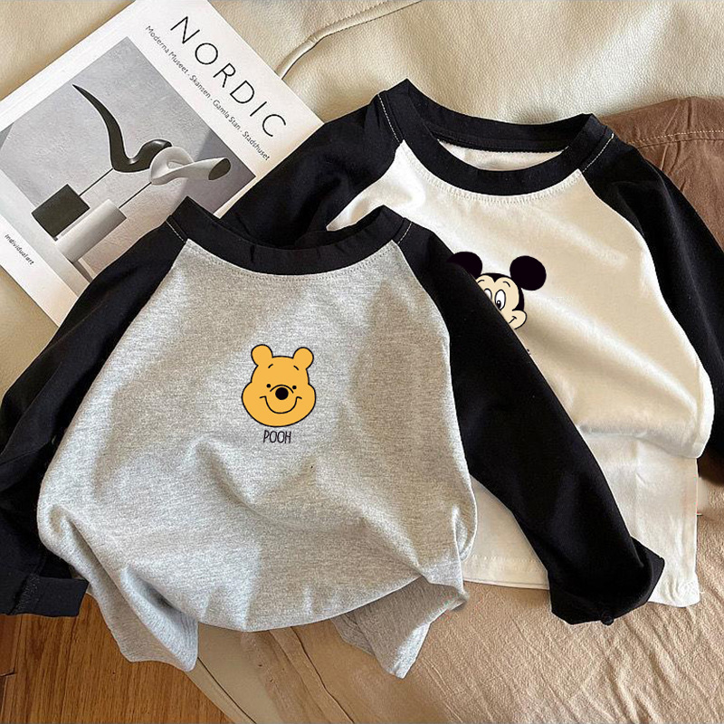 순수 코튼 아동 티셔츠 긴팔 소년 소녀 의류 2025 귀여운 만화 미키 어린이상의 바닥 셔츠 봄, 가을스토어 가기