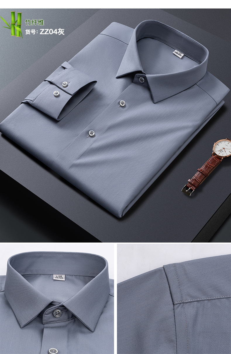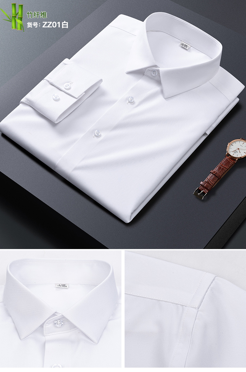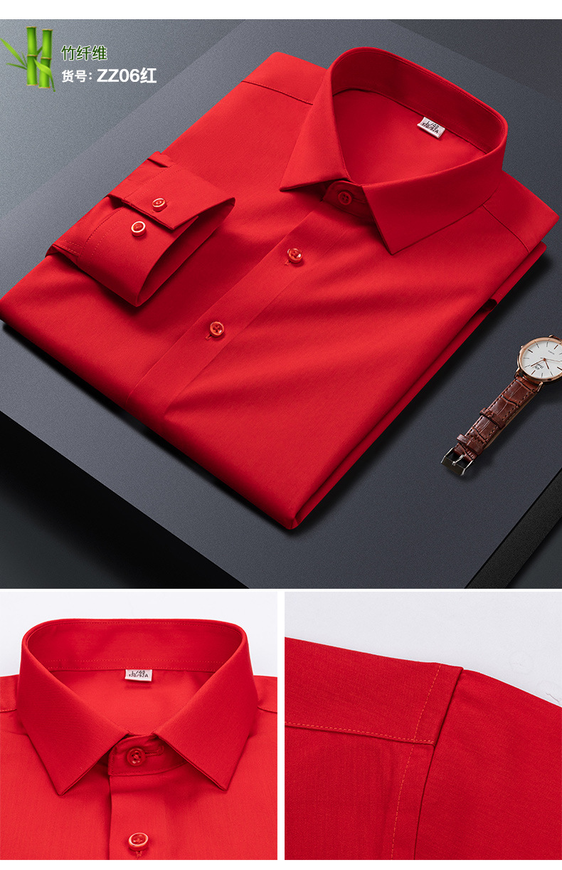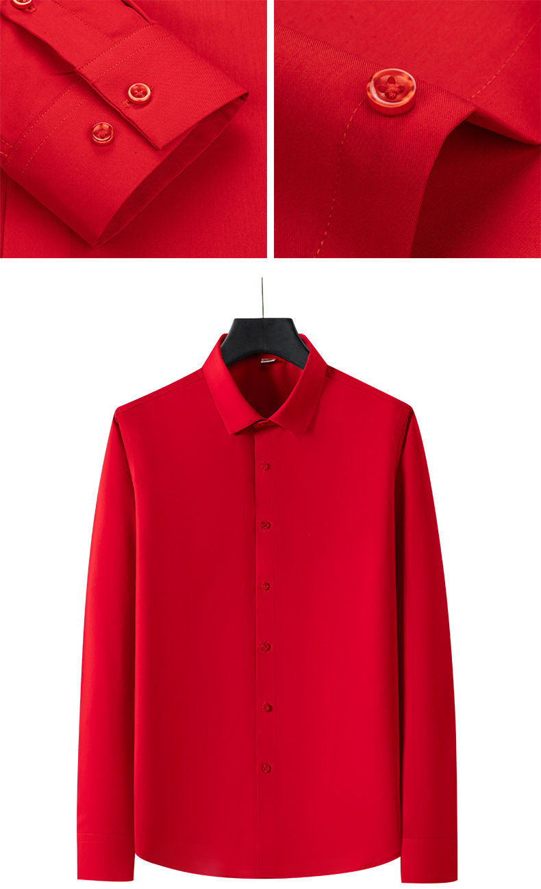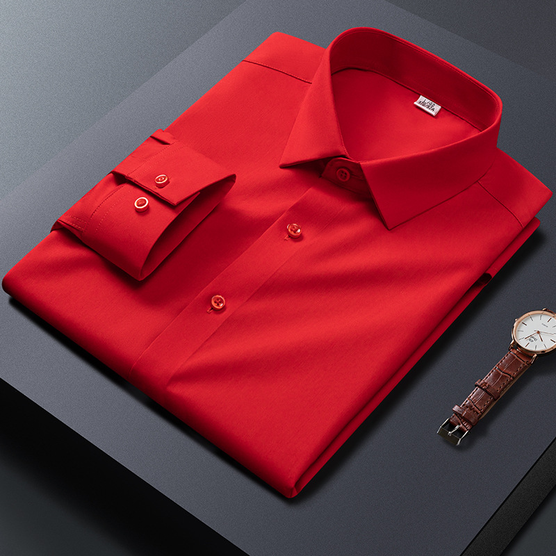 큰 빨간 대나무 섬유 긴팔 단색 긴팔 셔츠 남자의 슬림핏 원활한 비즈니스 원피스 셔츠 흰색 셔츠 남자의스토어 가기