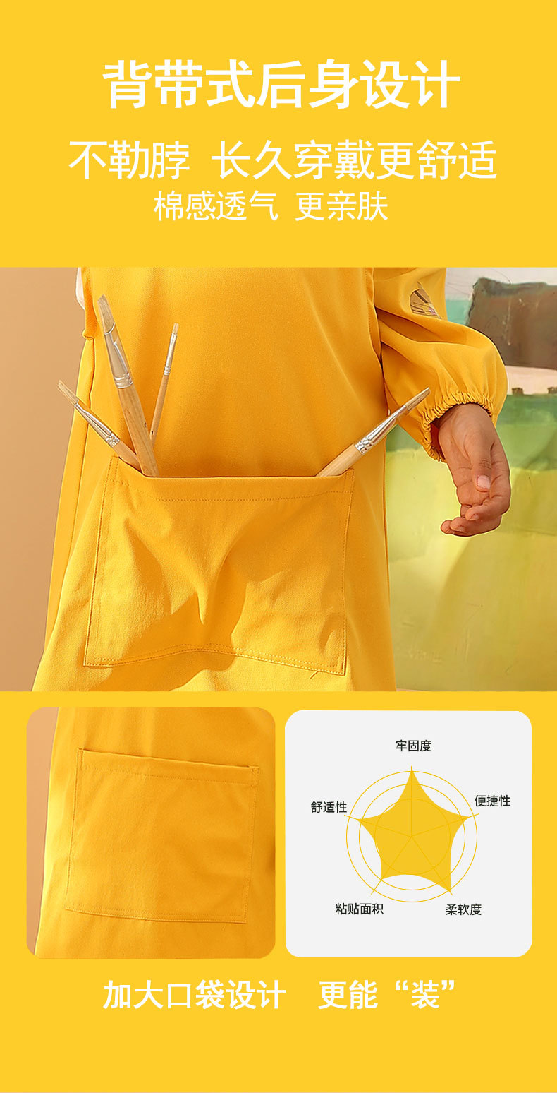 • 노란색 브러시 앞치마 "안티 튀는면 감각 통기성]