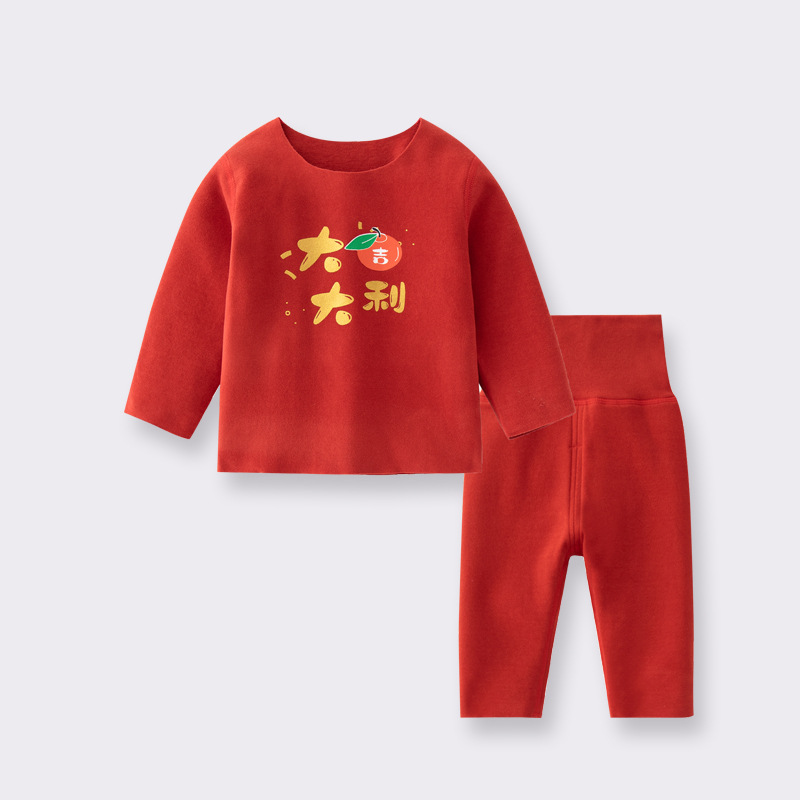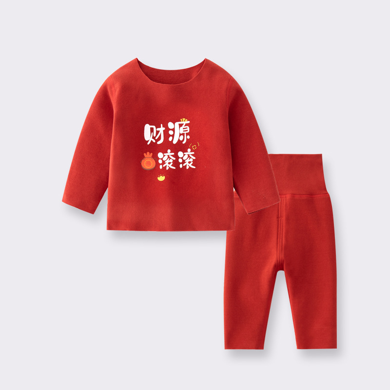 새해 의류 Aude Velvet 아기의 가을과 겨울 열 속옷 세트 빨간색 분할 가을 옷 가을 바지 잠옷 따뜻한 옷