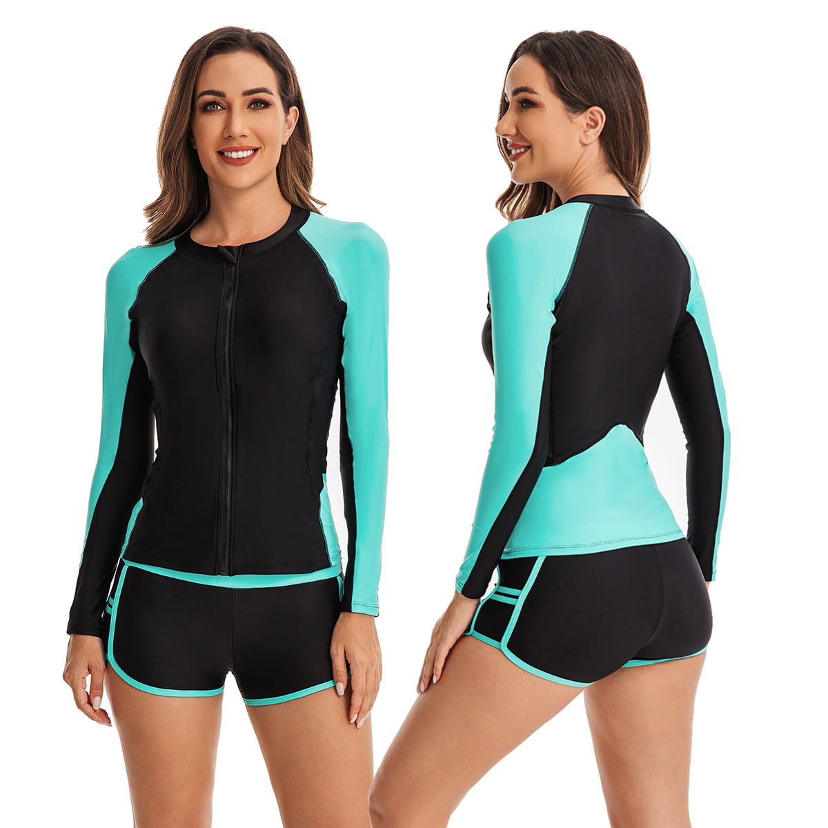 유럽과 미국 스플릿 복서 서핑수트 여성용 수영복 긴 소매 수영복 지퍼 가디건 여성용 Tankini Oni Flower 121047