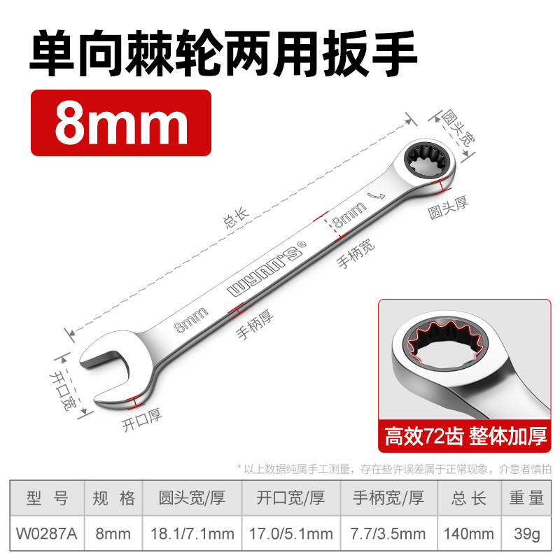 Weilishi 편도 래칫 이중 목적 렌치 세트 크롬 바나듐 강철 자동차 수리 렌치 자동 빠른 매화 오픈 렌치스토어 가기