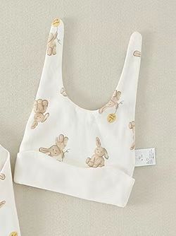 • 자카드 스퀘어 베이지 래빗 턱받이 프리 사이즈