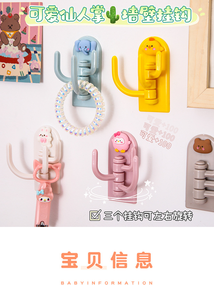 크리 에이 티브 만화 세 후크 귀여운 학생 기숙사 펀치-무료 원활한 스티커 후크 회전 선인장 후크 후크스토어 가기