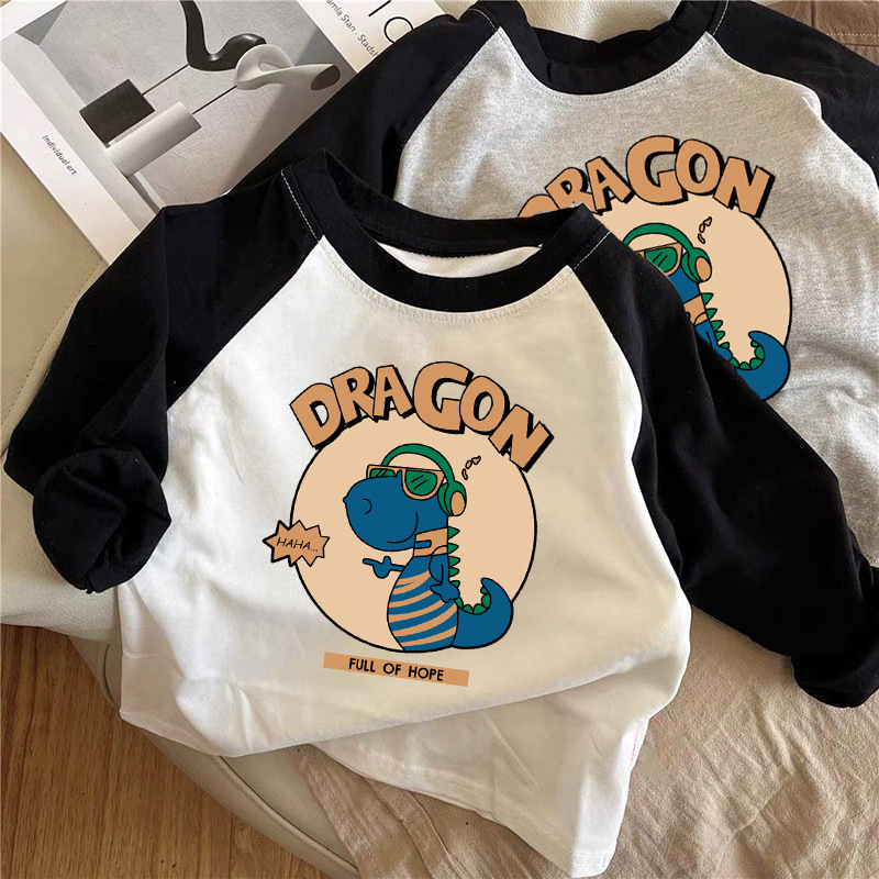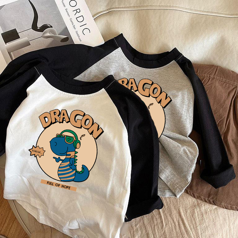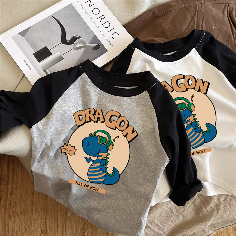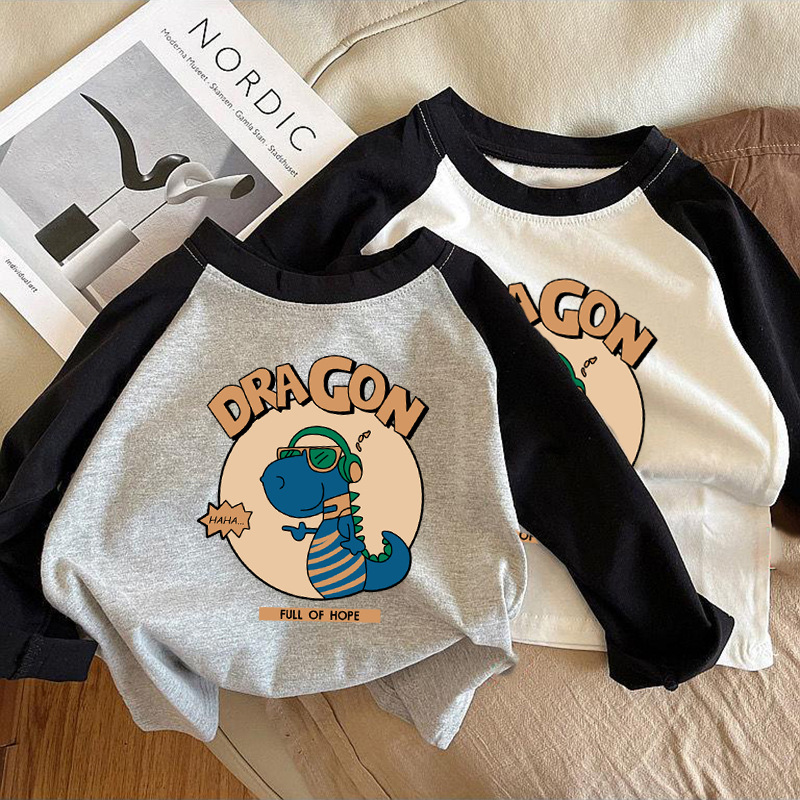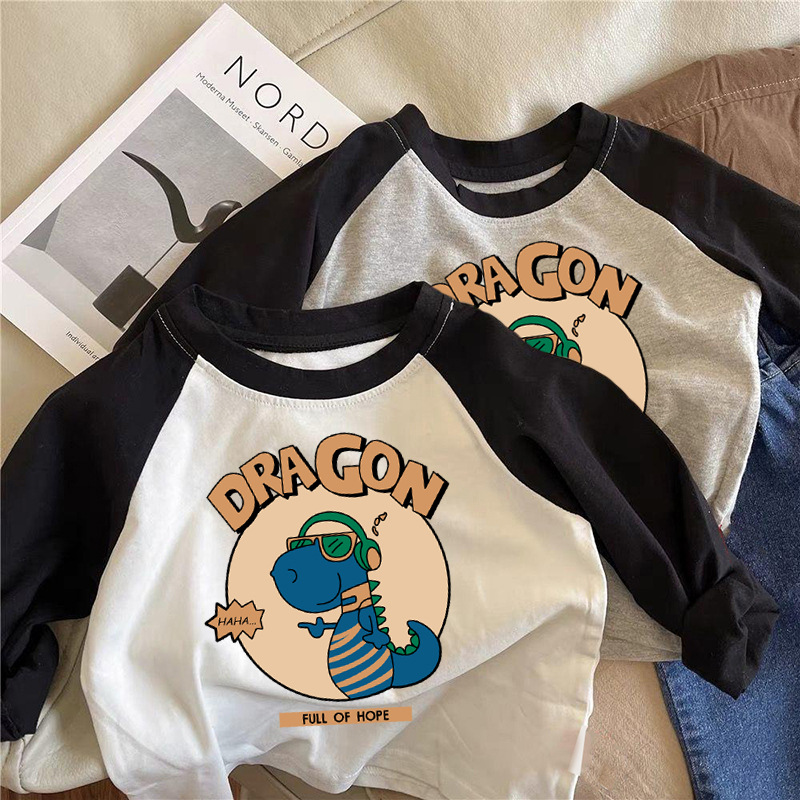 면 어린이 티셔츠 긴팔 남녀 아동복 2024 귀여운 만화 공룡 어린이 탑베이스 셔츠 봄과 가을스토어 가기