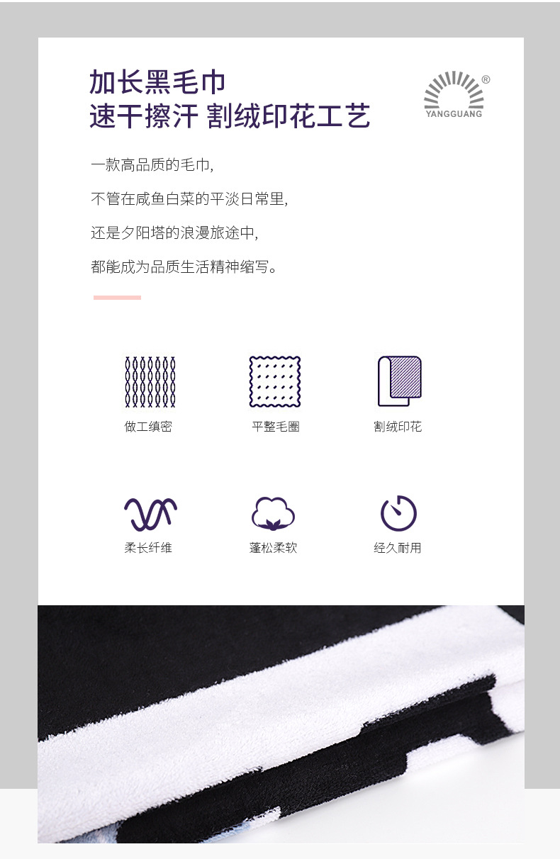 흑백 컷 벨벳 인쇄 스포츠 타월 피트니스 흡수 땀 두꺼운 부드러운 흡수 스포츠 타월 31*98cm