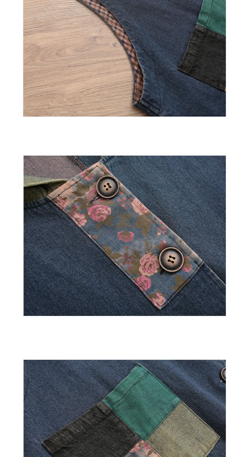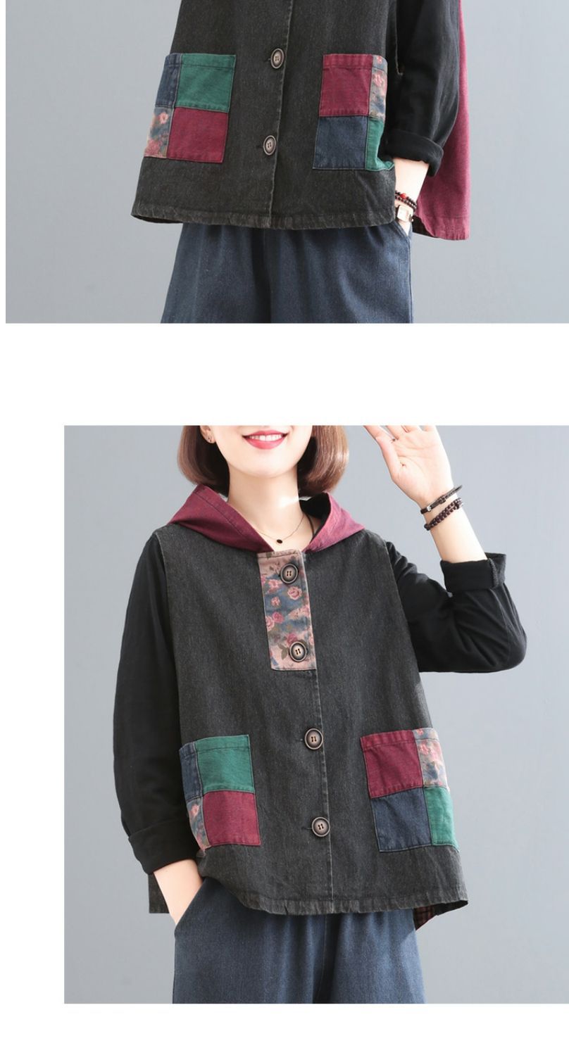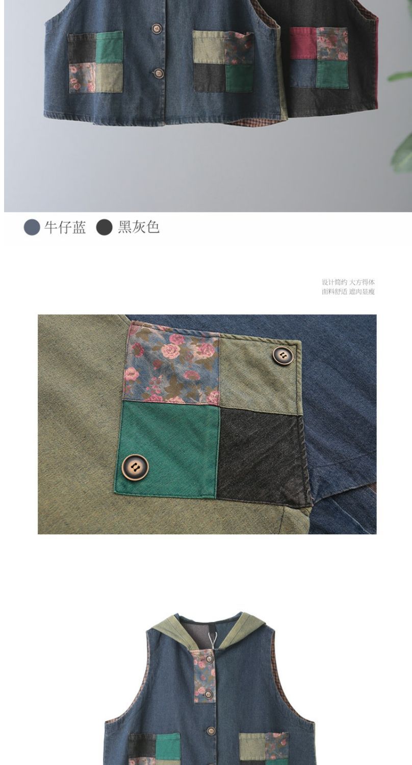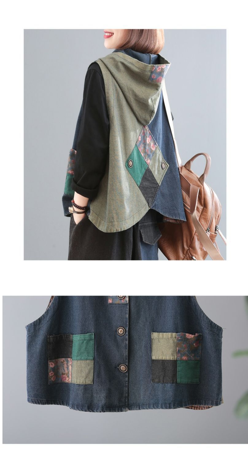 봄과 가을 새로운 한국 스타일 플러스 사이즈 고기 커버 빈티지 고민 후드 프린트 스티칭 데님 조끼스토어 가기