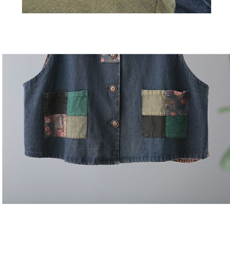 봄과 가을 새로운 한국 스타일 플러스 사이즈 고기 커버 빈티지 고민 후드 프린트 스티칭 데님 조끼