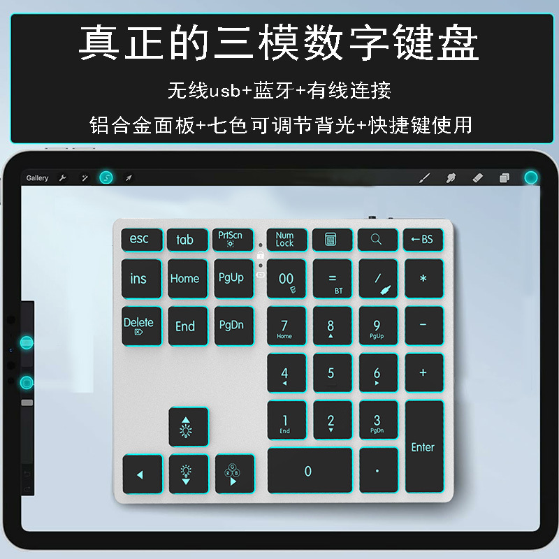 백라이트 블루투스 숫자 키패드 무선 충전식 금속 노트북 태블릿 외부 키보드 재무 회계 비밀