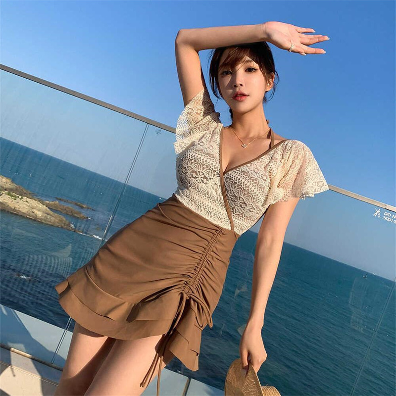 공장 2023 신상품 수영복 여자의 원피스 레이스 살 커버 슬림 섹시 한국 인스 타 그램 스타일 휴가 온천 수영복