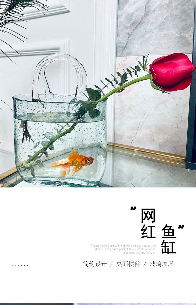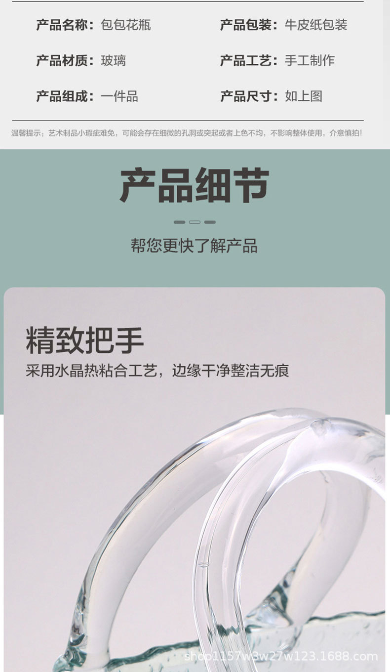 창의적인 가방 모양 꽃병, 유리 꽃병, 고급스러운 인테리어 소품, 인스타 감성, 거실 및 다실 장식, 고급스러운 분위기스토어 가기