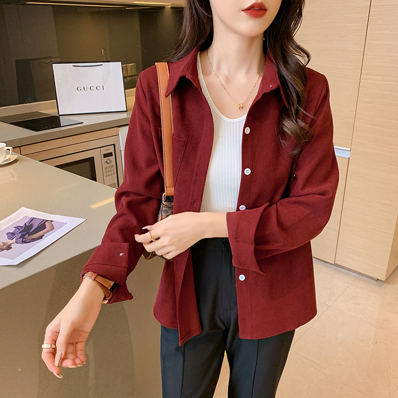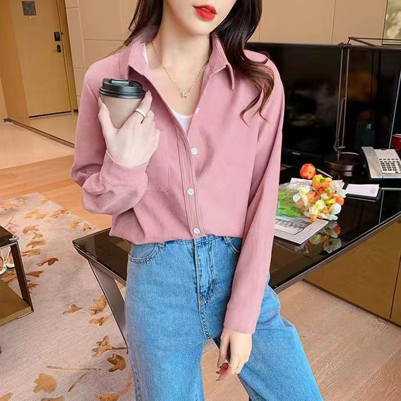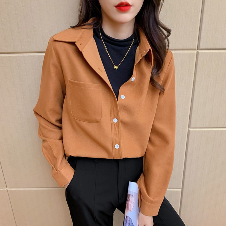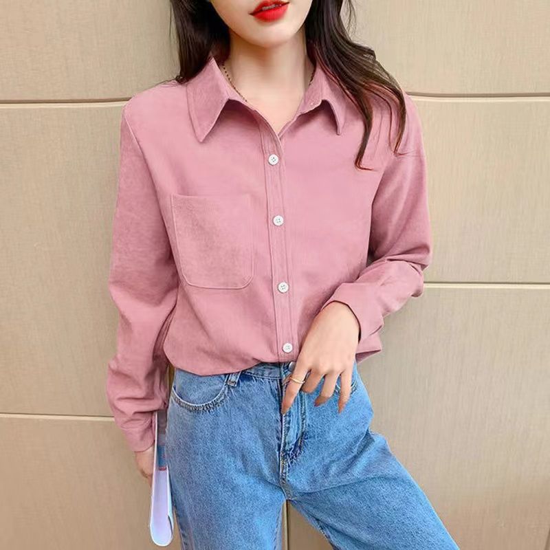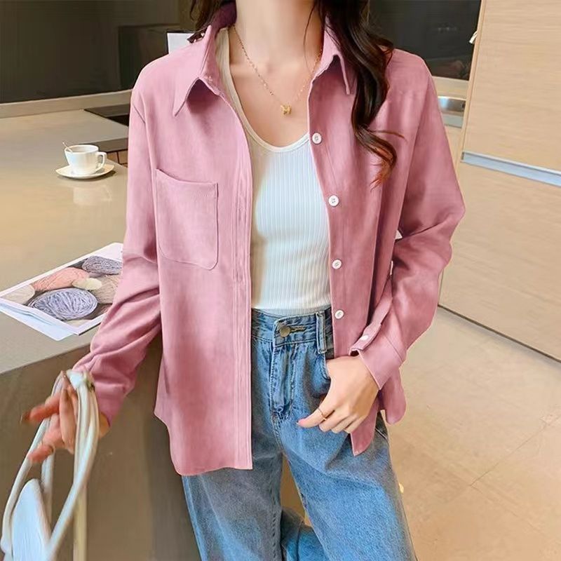 2025 가을 겨울 신상 기모 루즈핏 슬림 셔츠, 긴팔 레이어드 셔츠 여성용