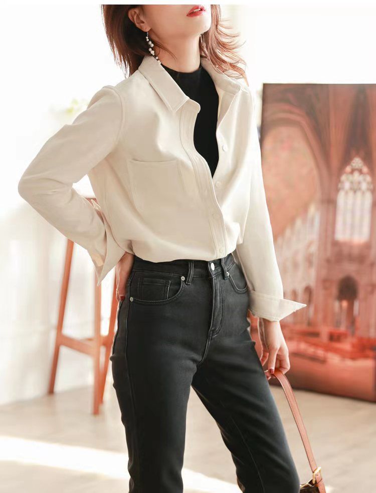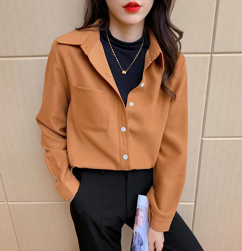 2025 가을 겨울 신상 기모 루즈핏 슬림 셔츠, 긴팔 레이어드 셔츠 여성용스토어 가기
