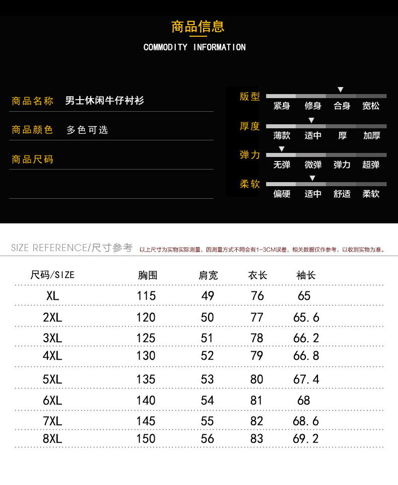M-8xL 면 긴 소매 데님 셔츠 남성 캐주얼 데님 셔츠 플러스 큰 크기 봄 새로운 1665스토어 가기