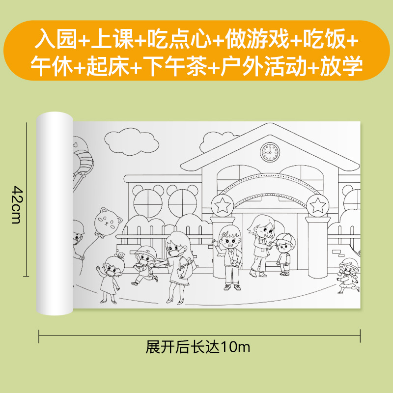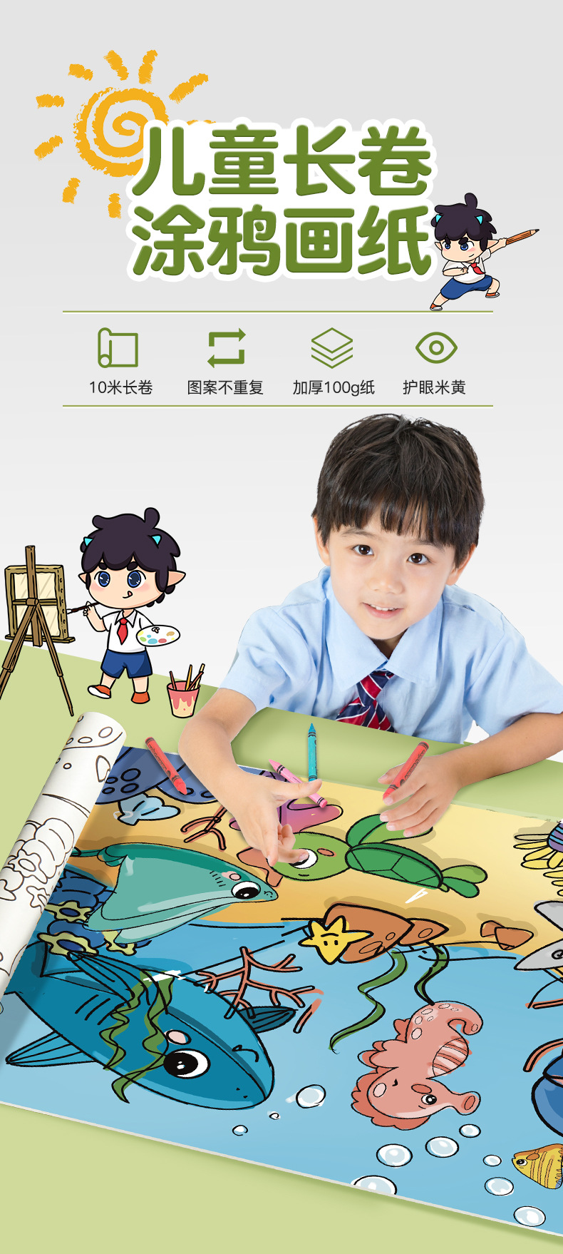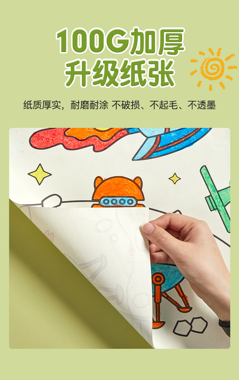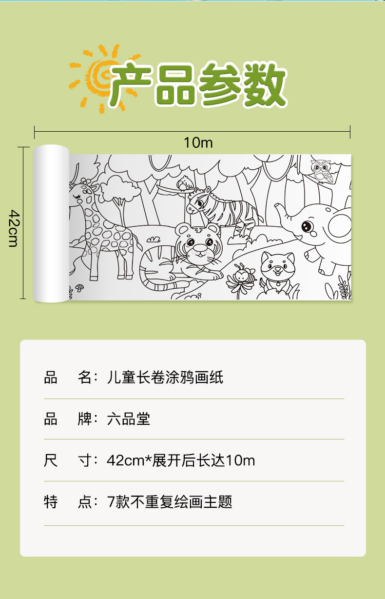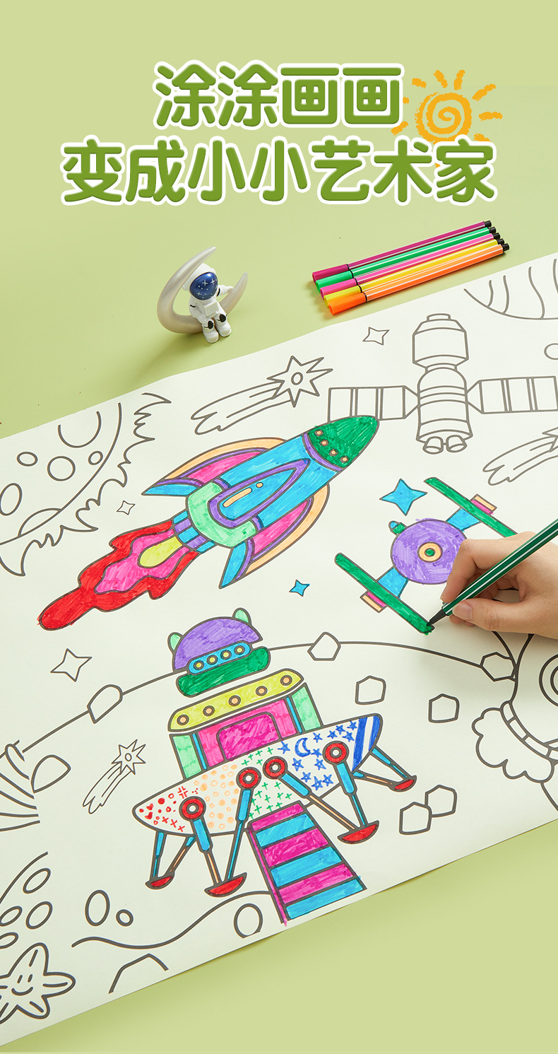 • 10 미터 그림 스크롤 (수중 세계 + 교통 시설 + 미식가 재능 + 재미있는 생활 + 우주 모험 + 동물의 세계 + 놀이터) + 12 색 유화 스틱