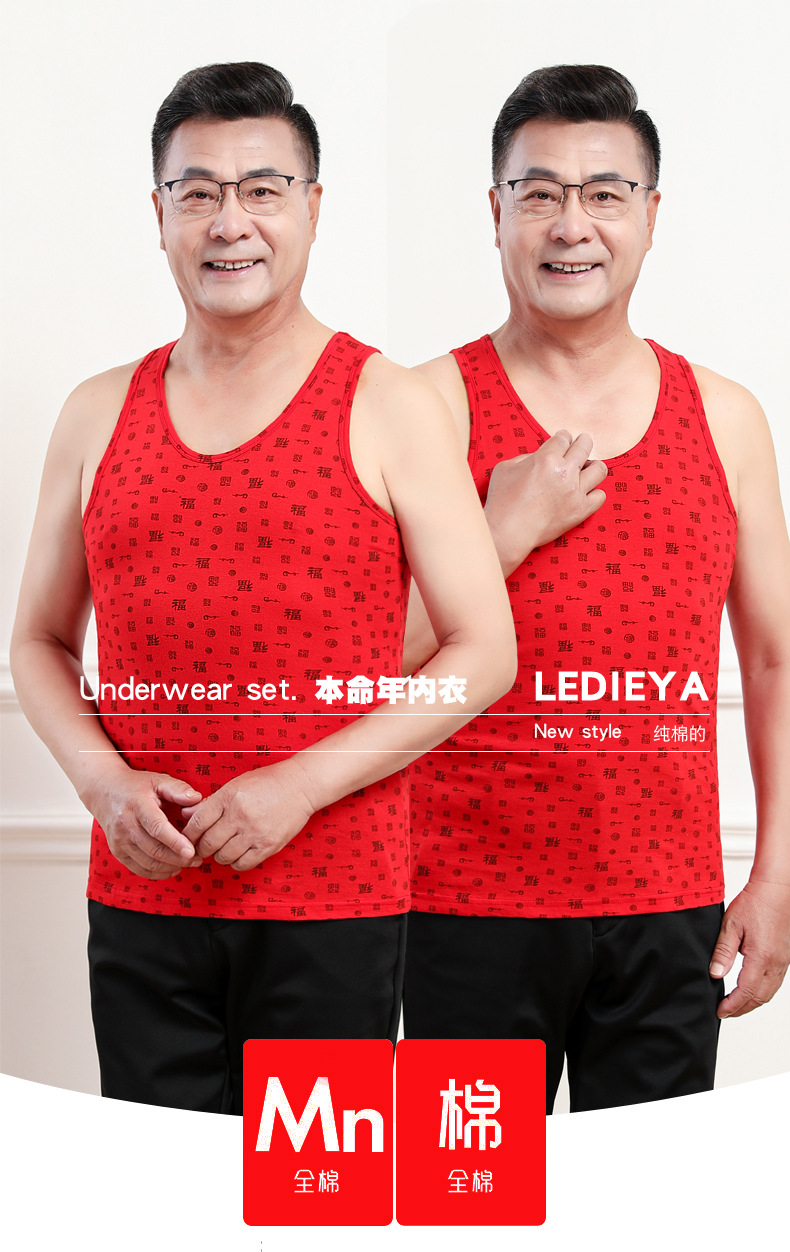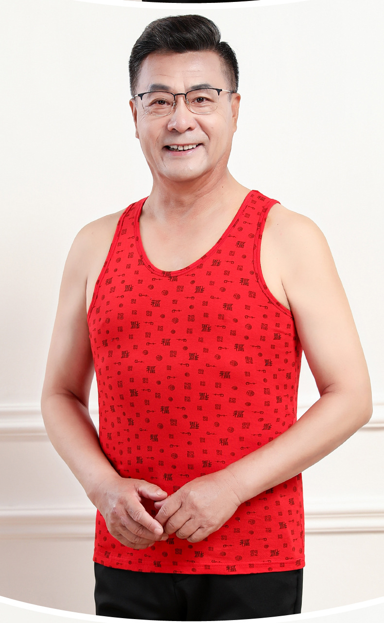 Bermingnian 빨간 조끼 남자의 순면 순면 푸 속옷 속옷 아빠의 루즈한베이스 노인 속옷스토어 가기