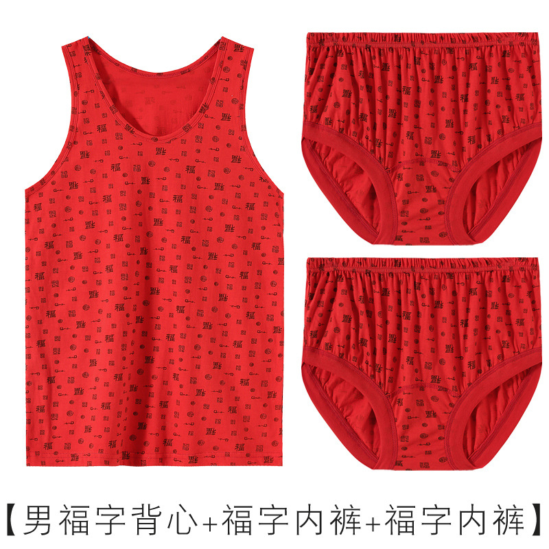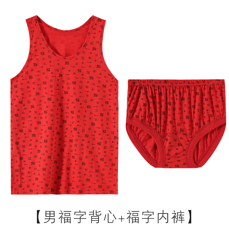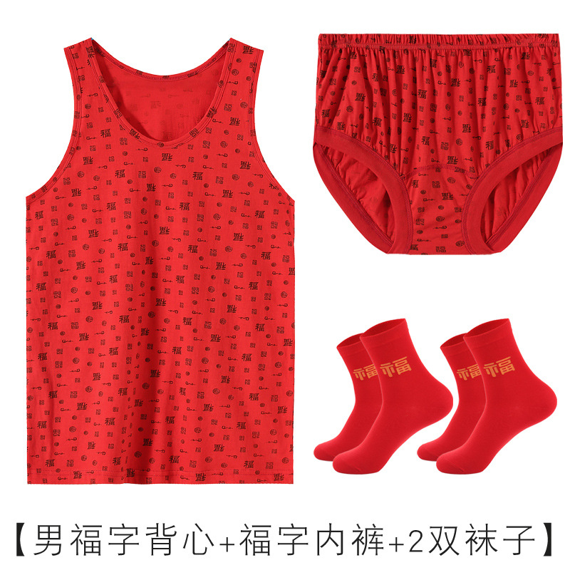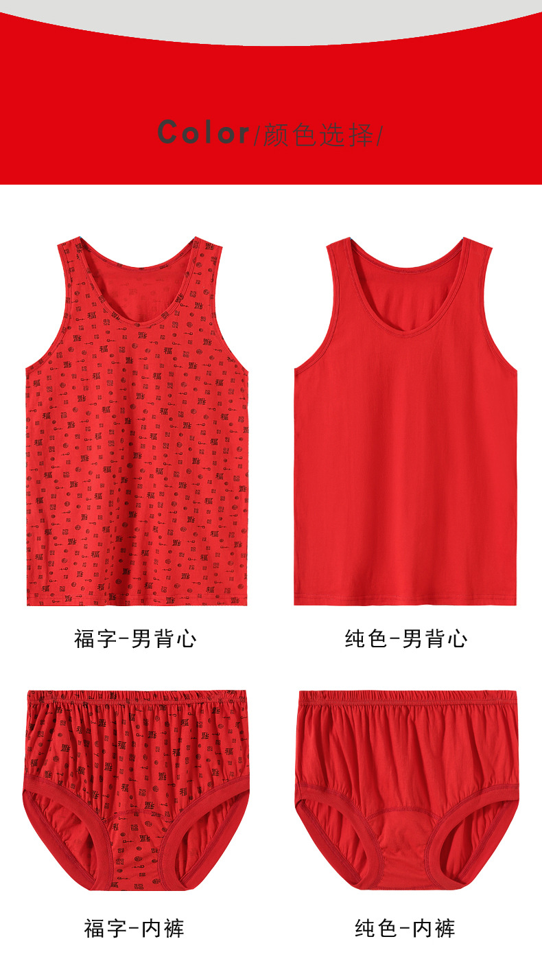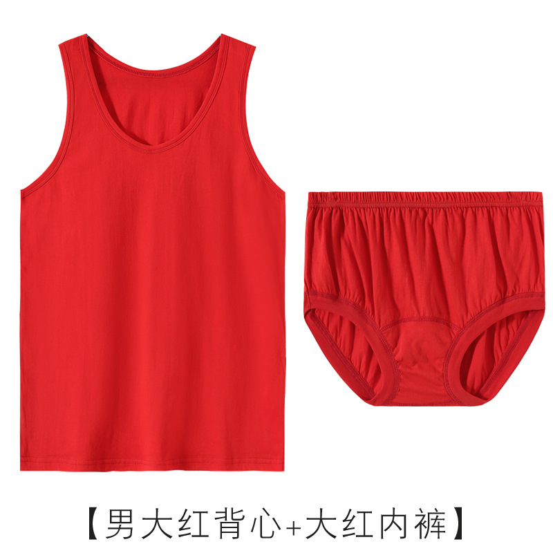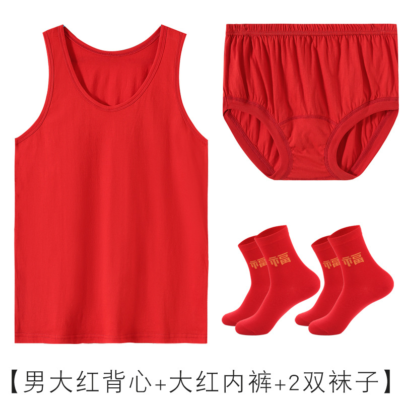 • [남성] 빨강 단색 조끼 + 빨강 단색 속옷 + 빨강 양말 2 개