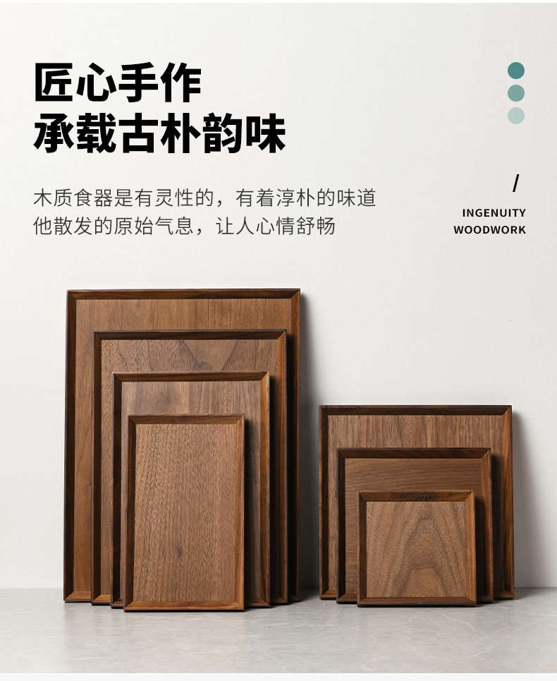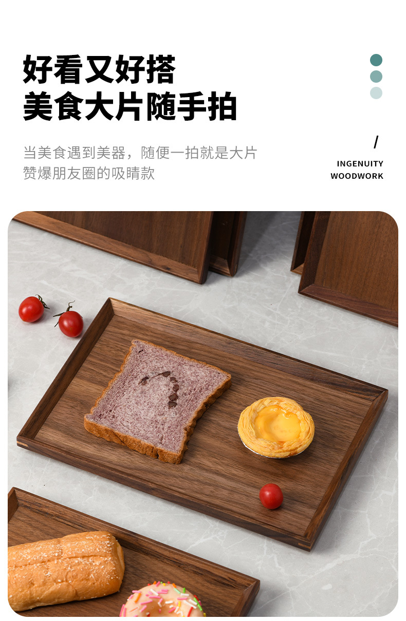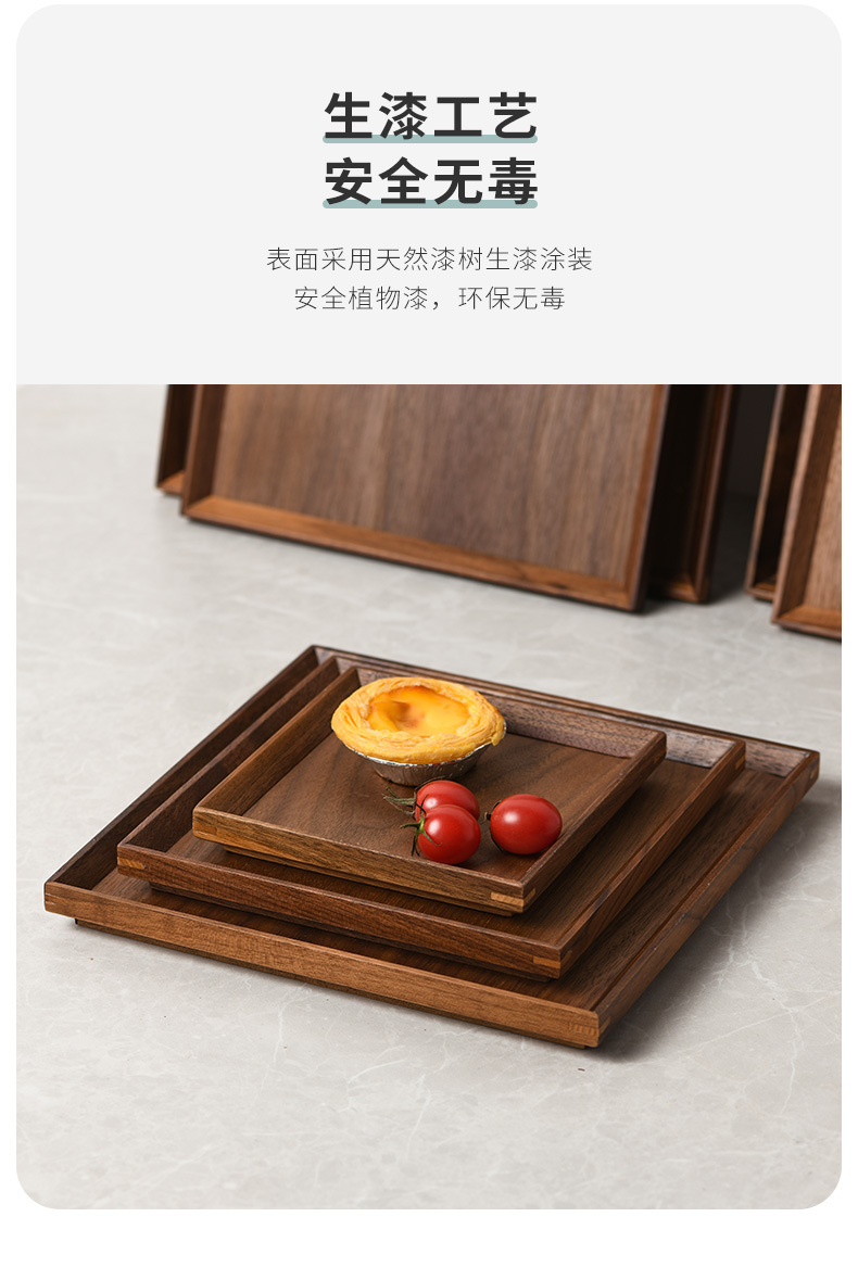 다이파 블랙 호두 중국 나무 트레이 광장 서양 과일 피자 플레이트 커피 말린 과일 레드 플레이트스토어 가기
