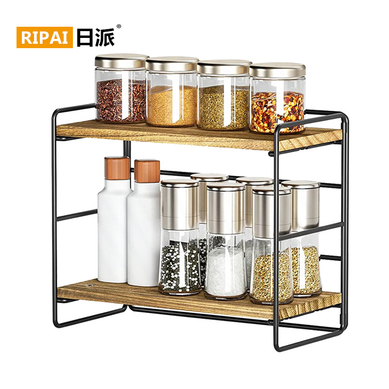 Ripai 소스 공장 주방 랙 데스크탑 다기능 나무 더블 레이어 스토리지 랙 펀치 프리 조미료 랙스토어 가기