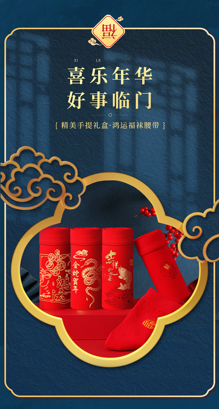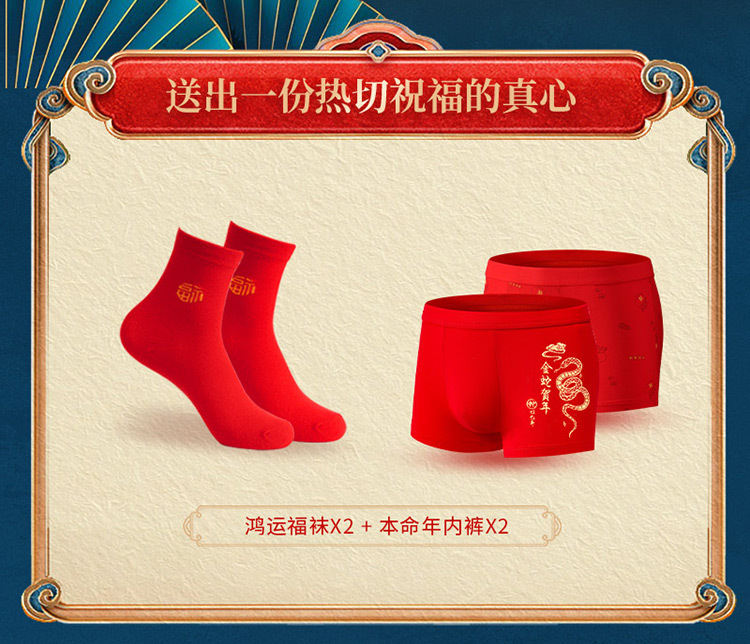 • 황금 뱀 + 행운 + 빨간색 면 양말 2켤레