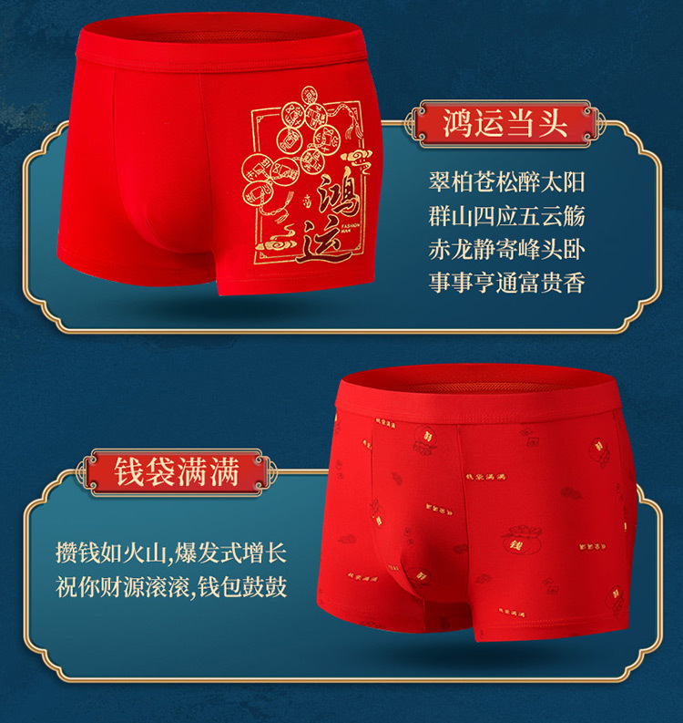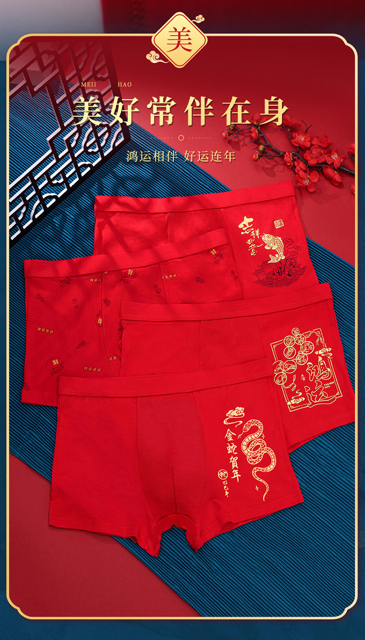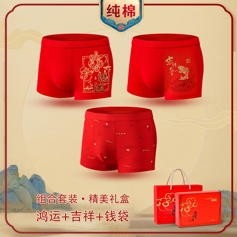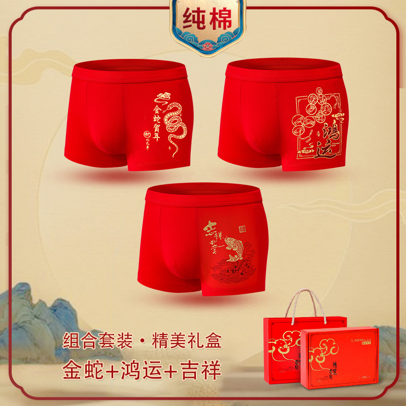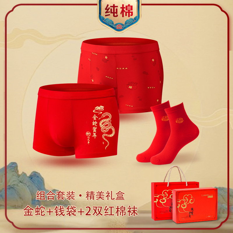 빨간 속옷 남자 뱀의 해 남자 순면 양말 세트 결혼식 빅 레드 포 코너 남자 바지