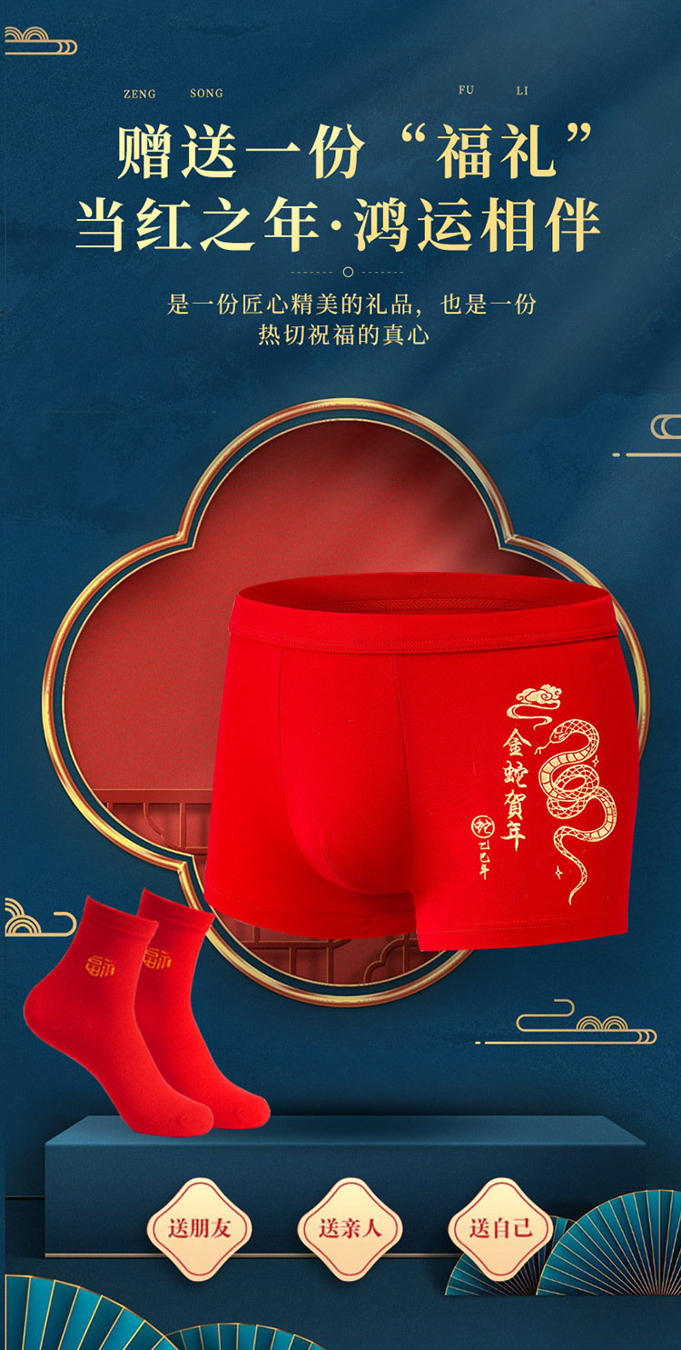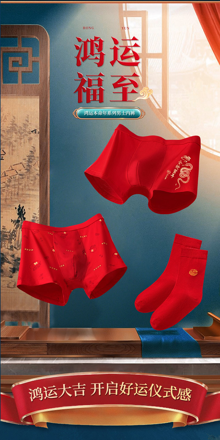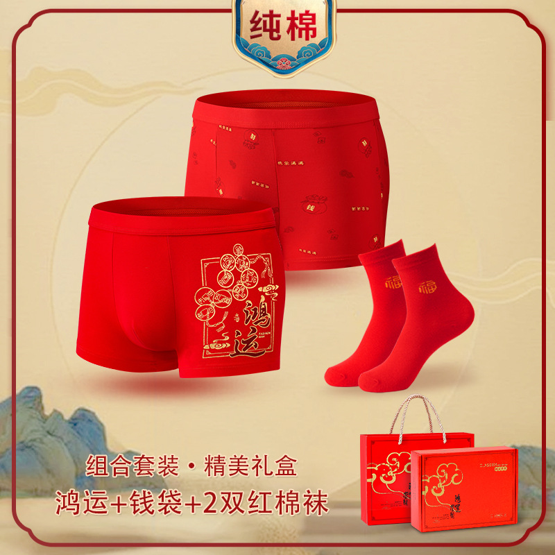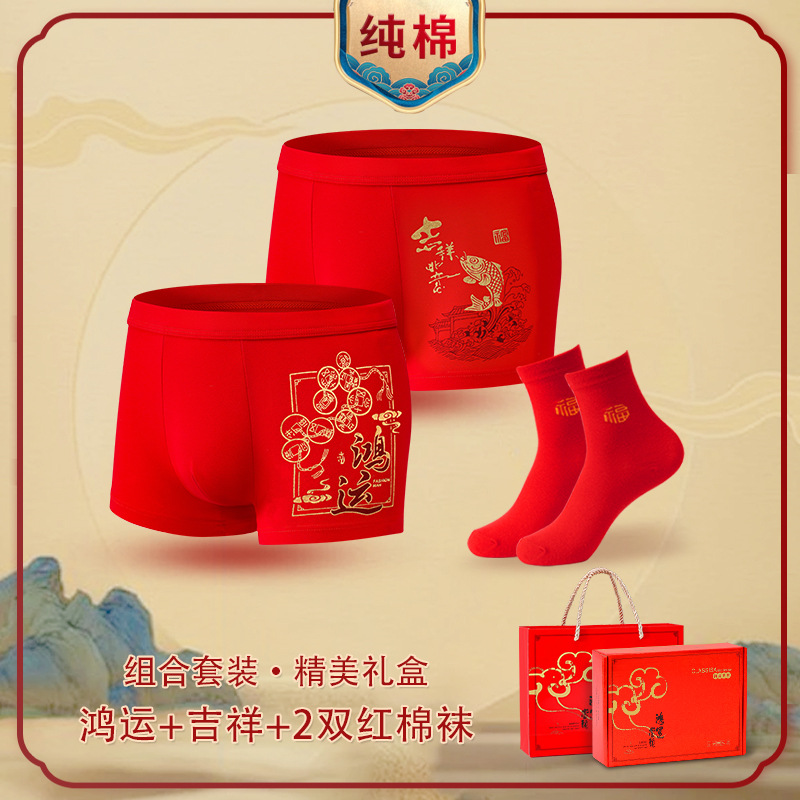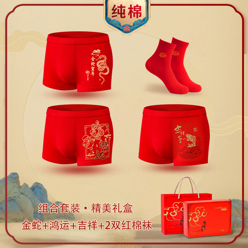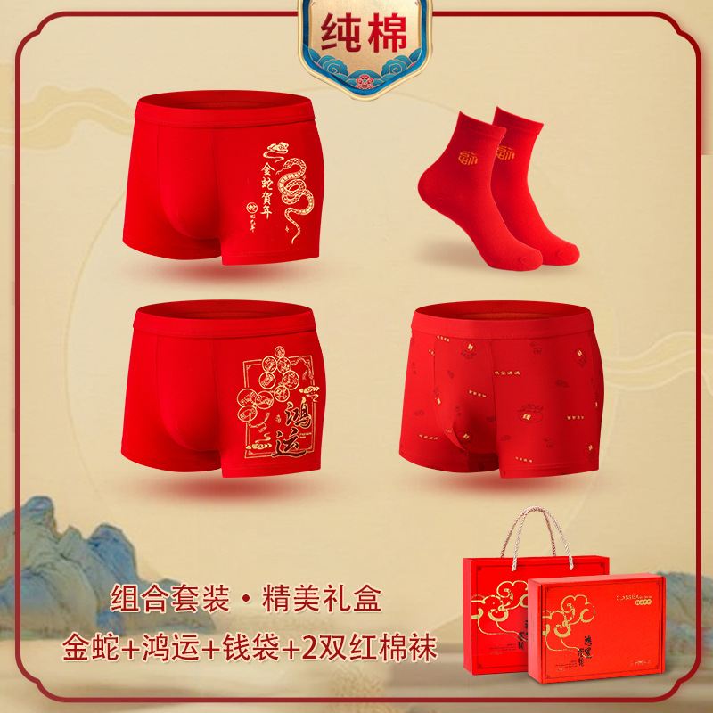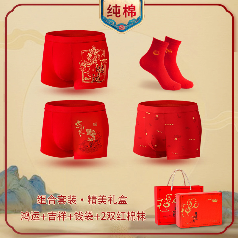 빨간 속옷 남자 뱀의 해 남자 순면 양말 세트 결혼식 빅 레드 포 코너 남자 바지스토어 가기