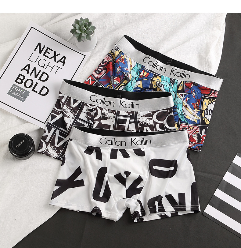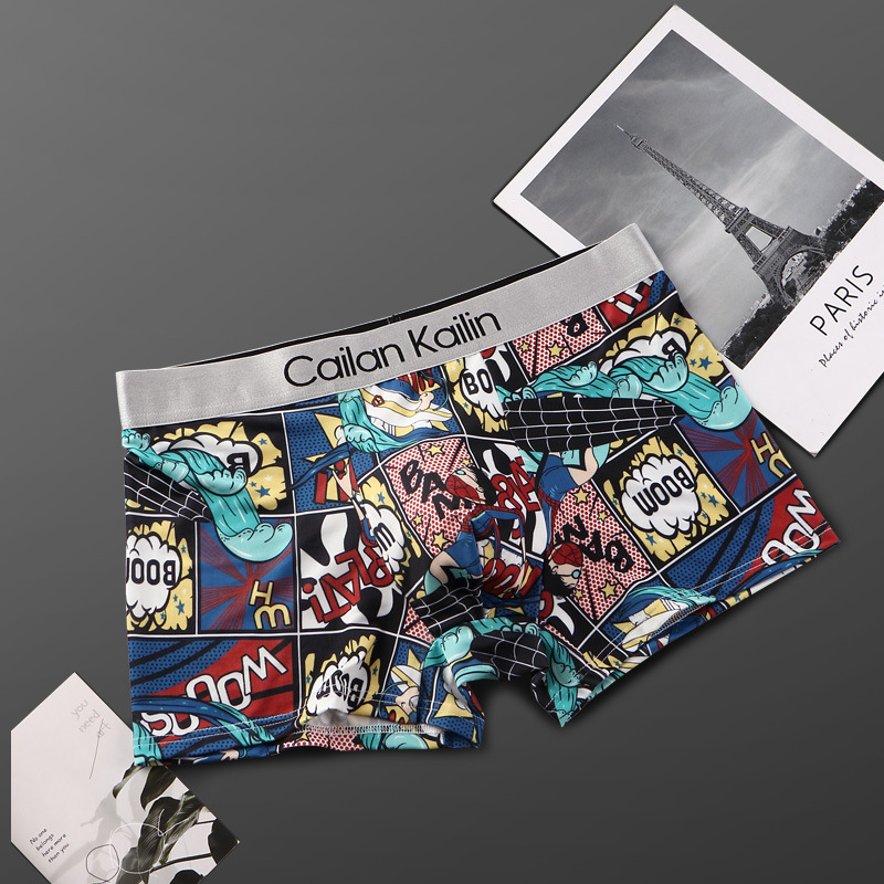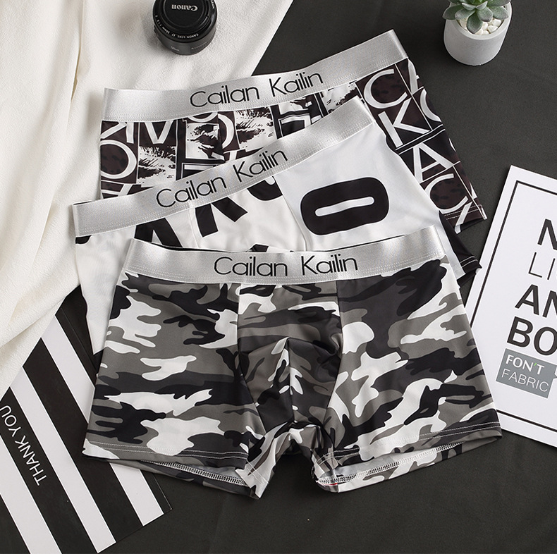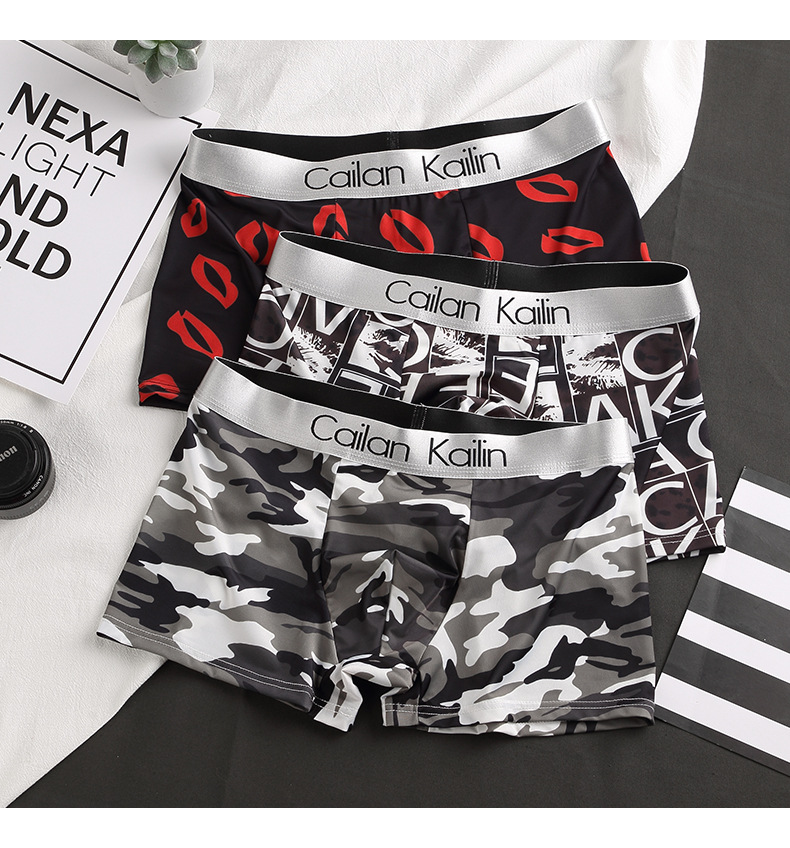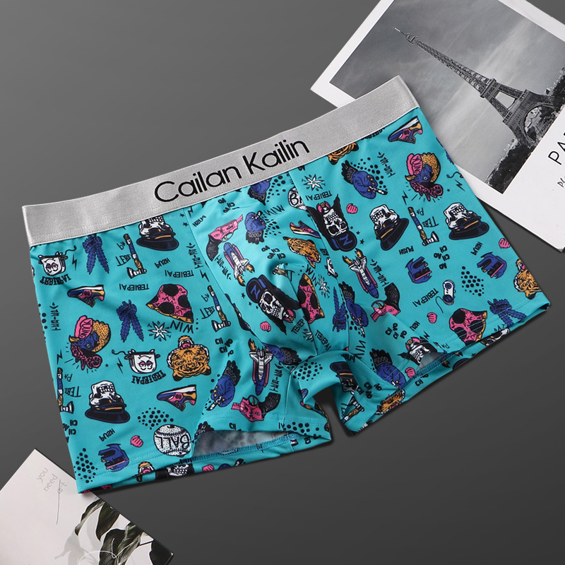 남자 속옷 아이스 실크 복서 여름 시원한 감각 인쇄 바지 통기성 복서 바지 얇은 제조 업체 도매 크로스 보더
