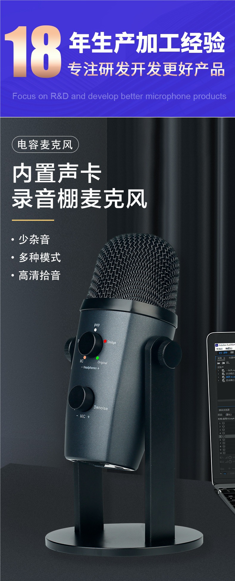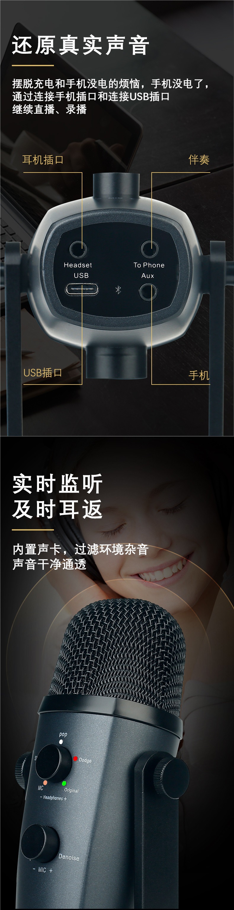 원제조사 USB 블루투스 콘덴서 마이크 e스포츠 게임 온라인 수업 노래 휴대폰 라이브 방송 컴퓨터 마이크스토어 가기