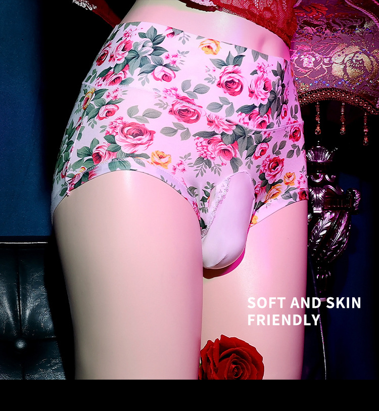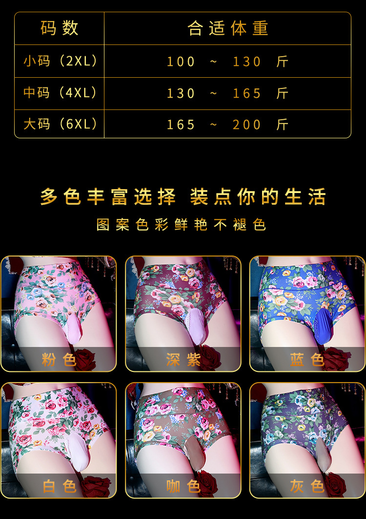 남성용 섹시한 특별 디자인 꽃무늬 속옷, 대형 사이즈, 통기성, 실키한 질감, jj 커버, 에로틱한 꽃무늬 삼각 팬티 100kg 하이웨이스트 통기성