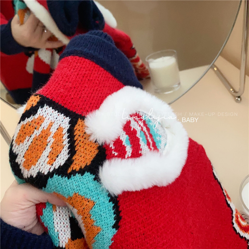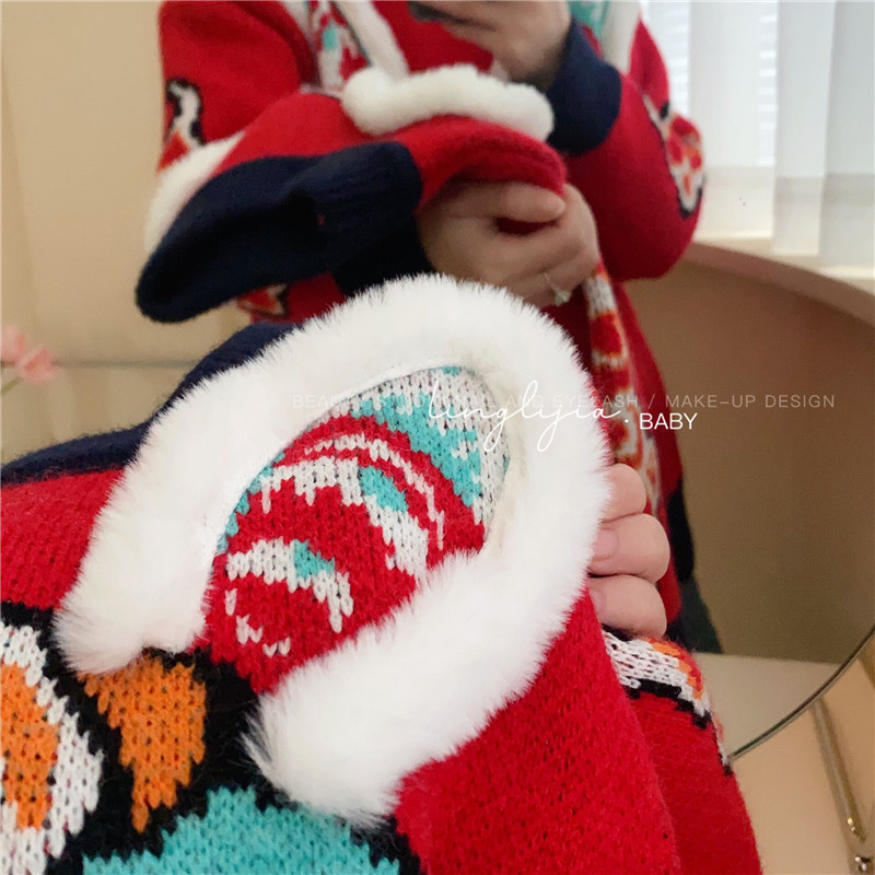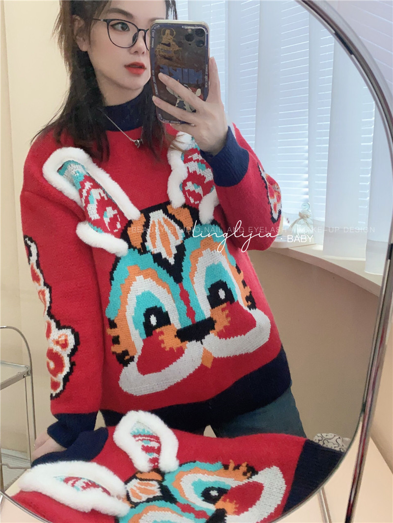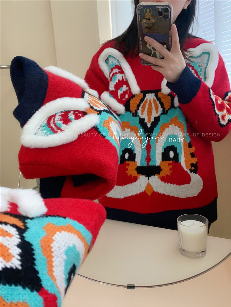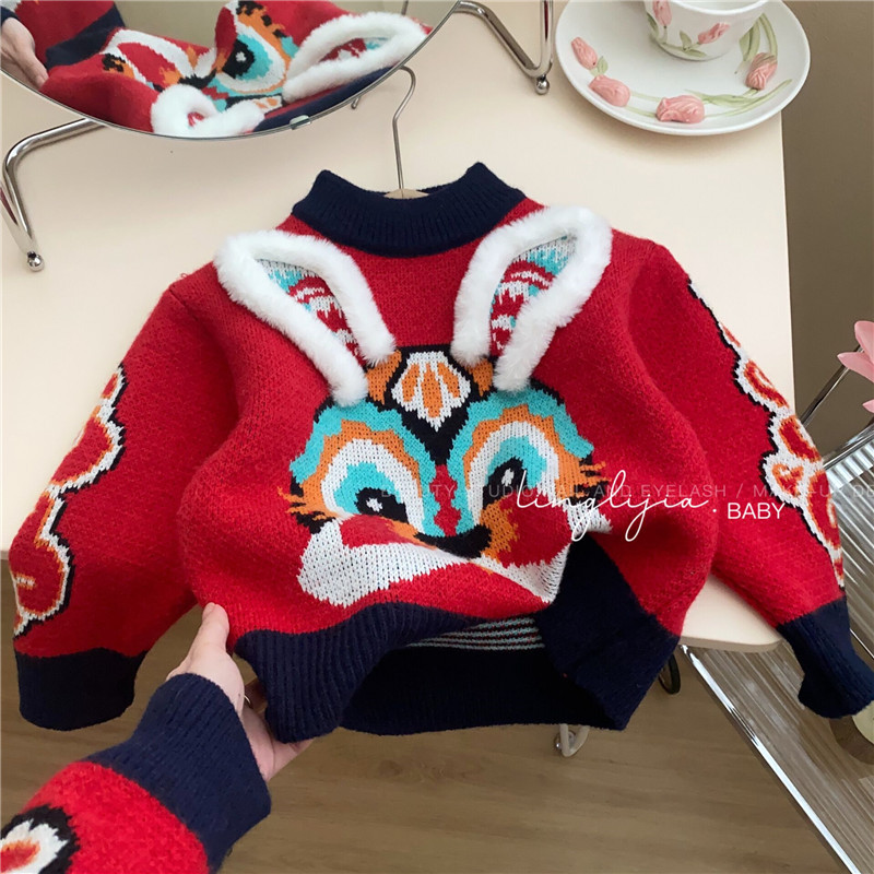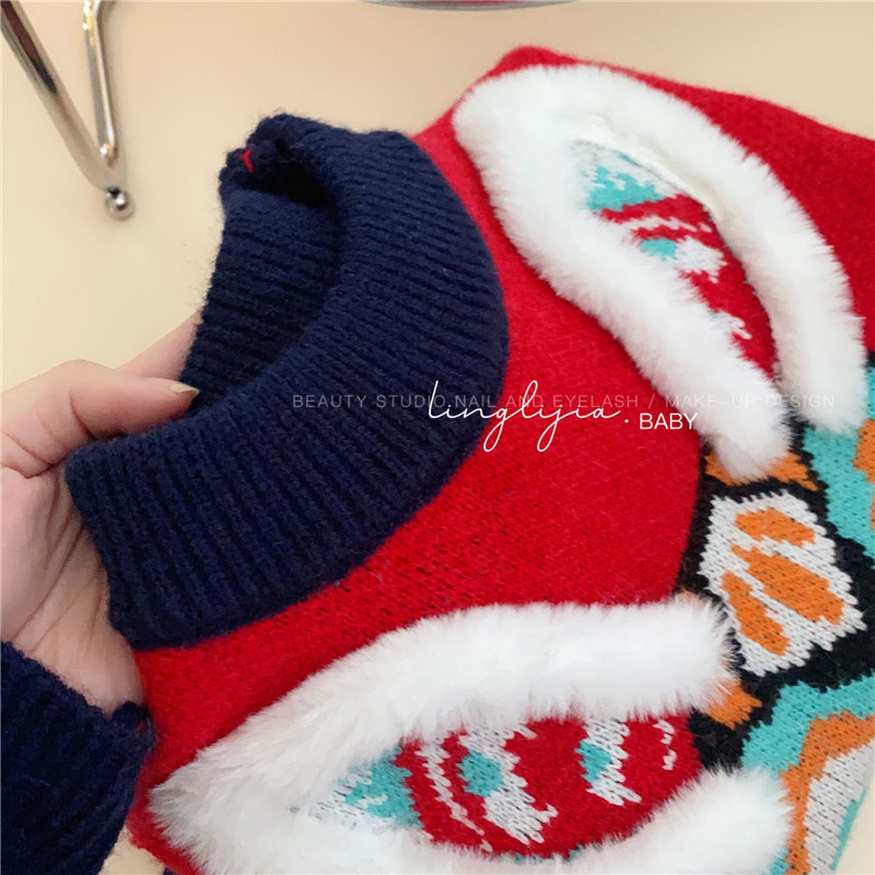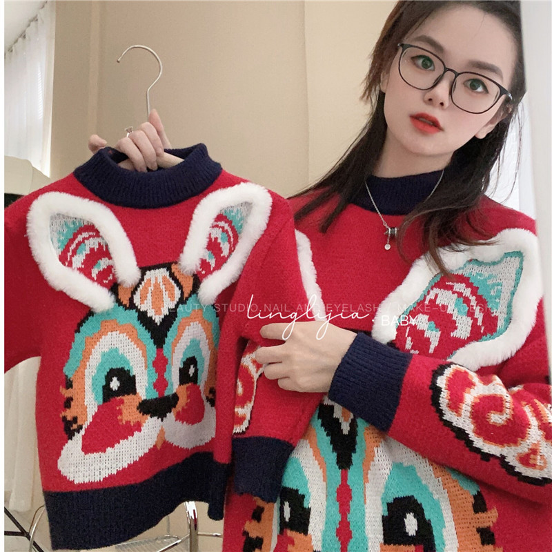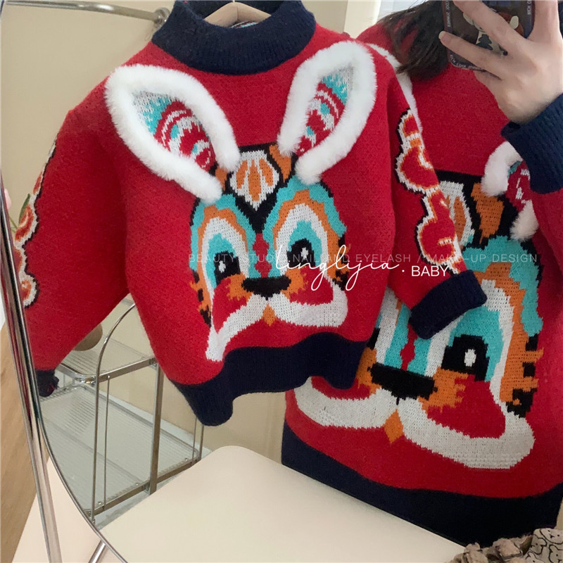 어린이 토끼 새해 스웨터 2023 소년 소녀 어린이 보물 부모-어린이 대비 두꺼운 새해 니트 스웨터