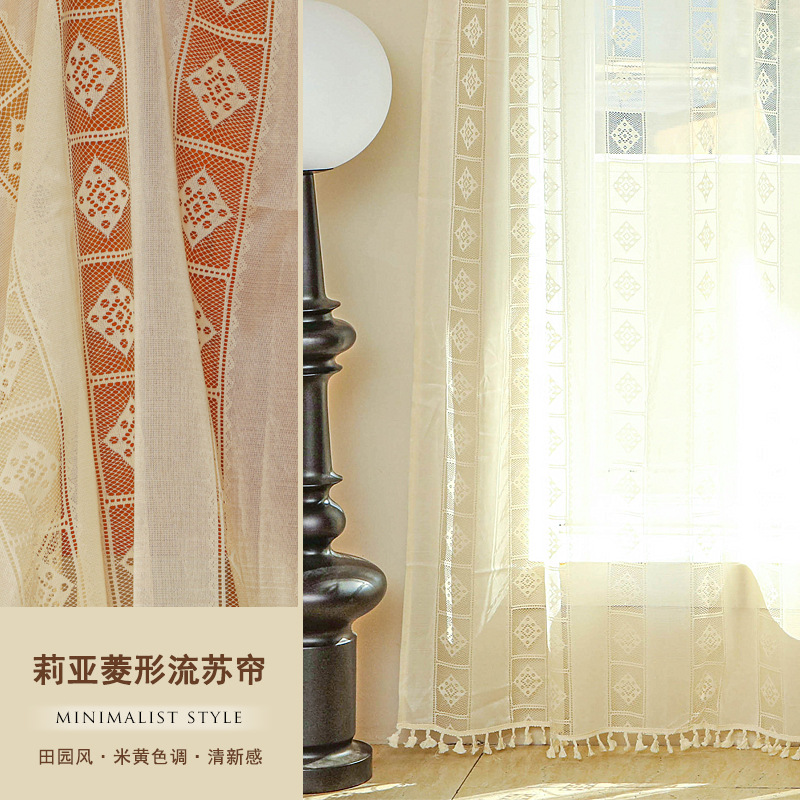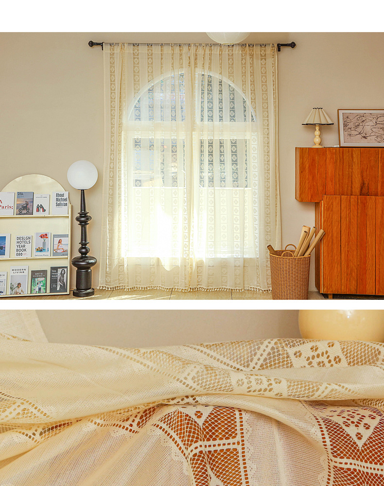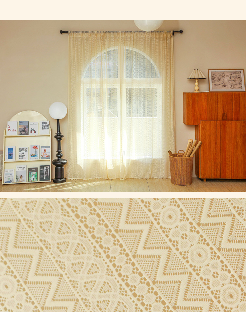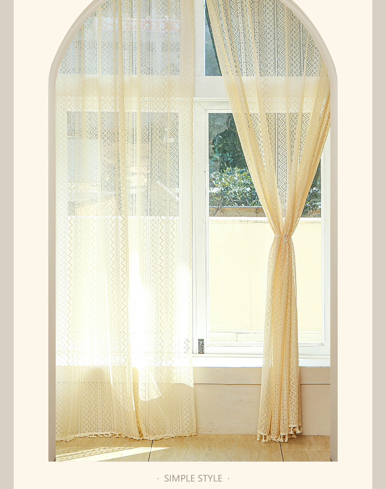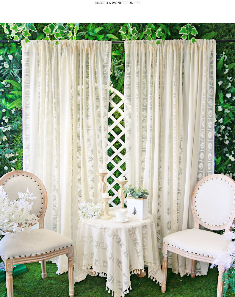 프렌치 빈티지 크로 셰 중공 레이스 커튼 보헤미안 아메리칸 스타일 윈도우 스크린 화이트 거즈 커튼 도매 완료스토어 가기
