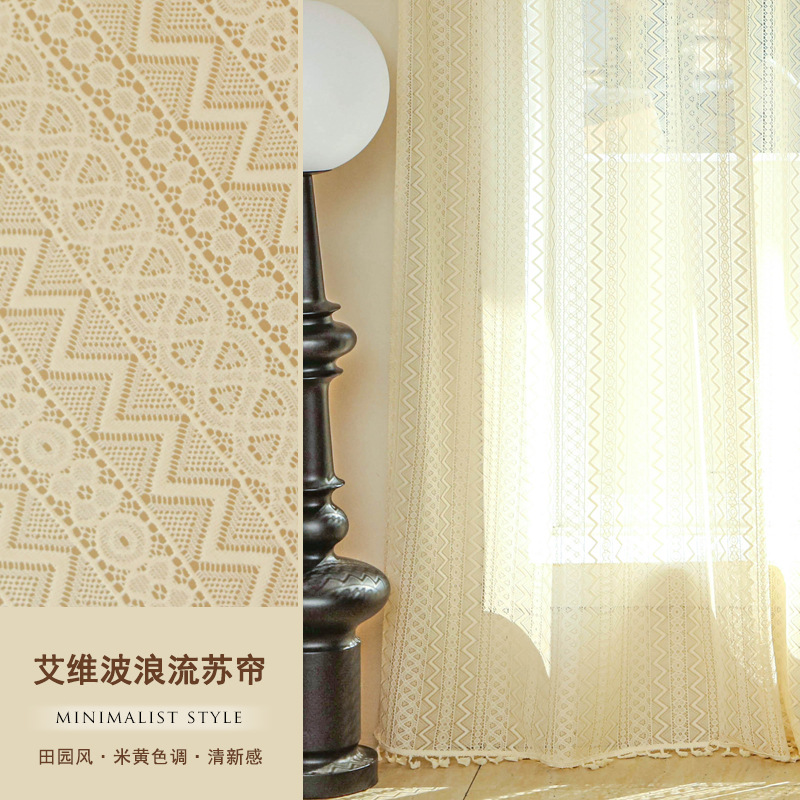 프렌치 빈티지 크로 셰 중공 레이스 커튼 보헤미안 아메리칸 스타일 윈도우 스크린 화이트 거즈 커튼 도매 완료
