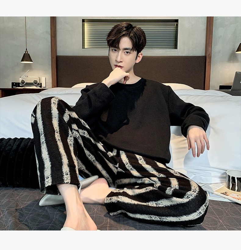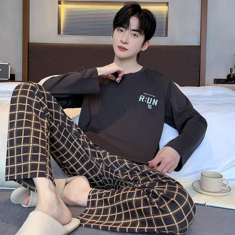 잠옷 남자의 세트 긴 소매 가을 여름 젊은 중년 봄과 가을 남자의 잠옷 학생 얇은 캐주얼 가정 의류 세트스토어 가기