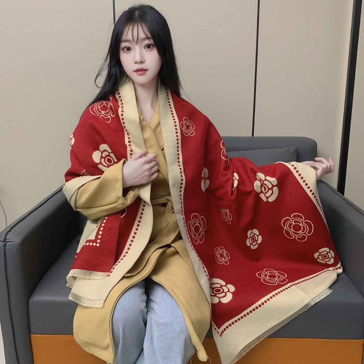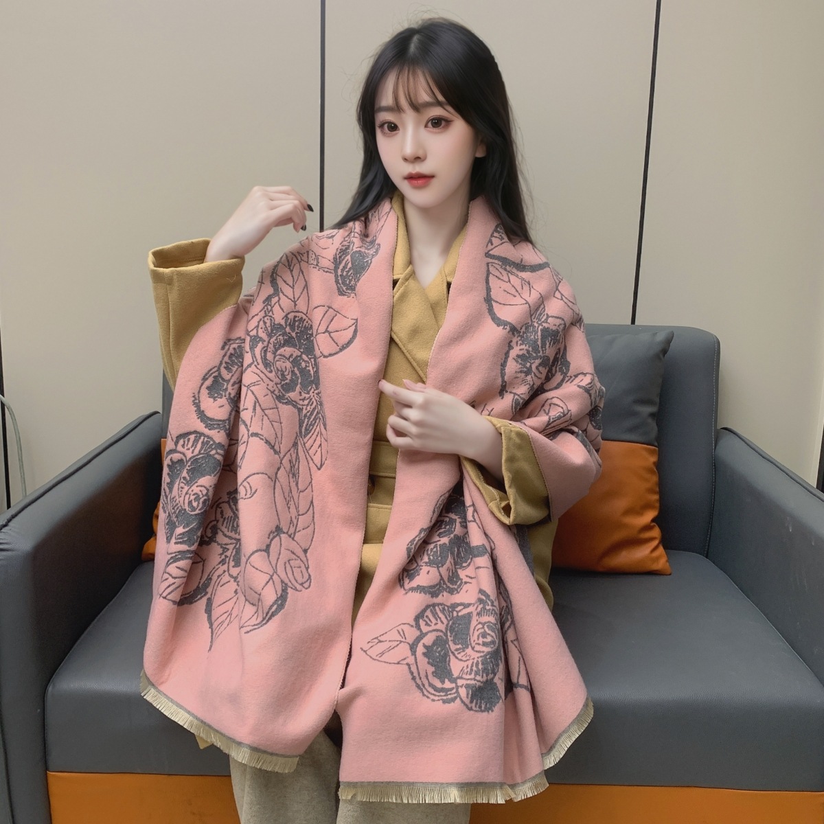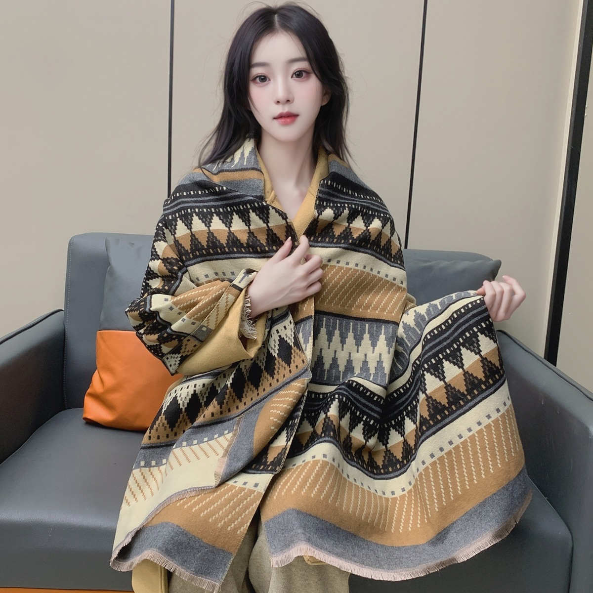 2025 새로운 스카프 여성 겨울 부드럽고 두꺼운 따뜻한 한국 스타일 베이비 격자 무늬 스트라이프 스카프 겸용