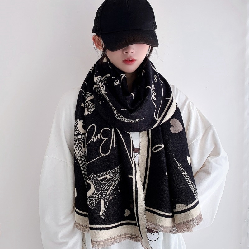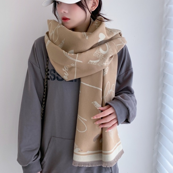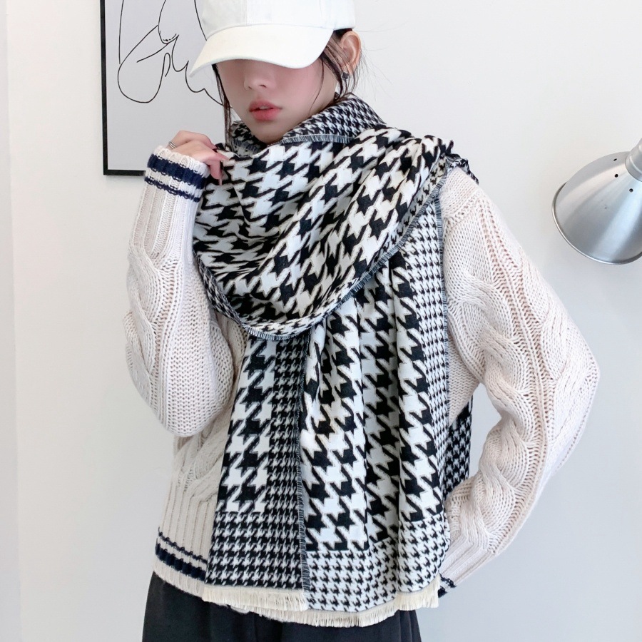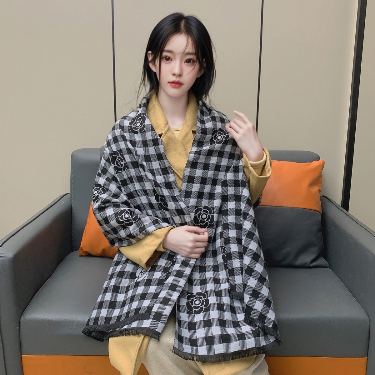 2025 새로운 스카프 여성 겨울 부드럽고 두꺼운 따뜻한 한국 스타일 베이비 격자 무늬 스트라이프 스카프 겸용스토어 가기
