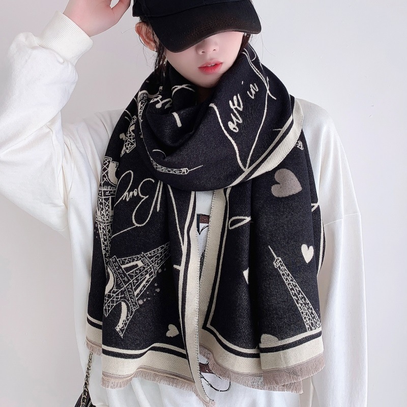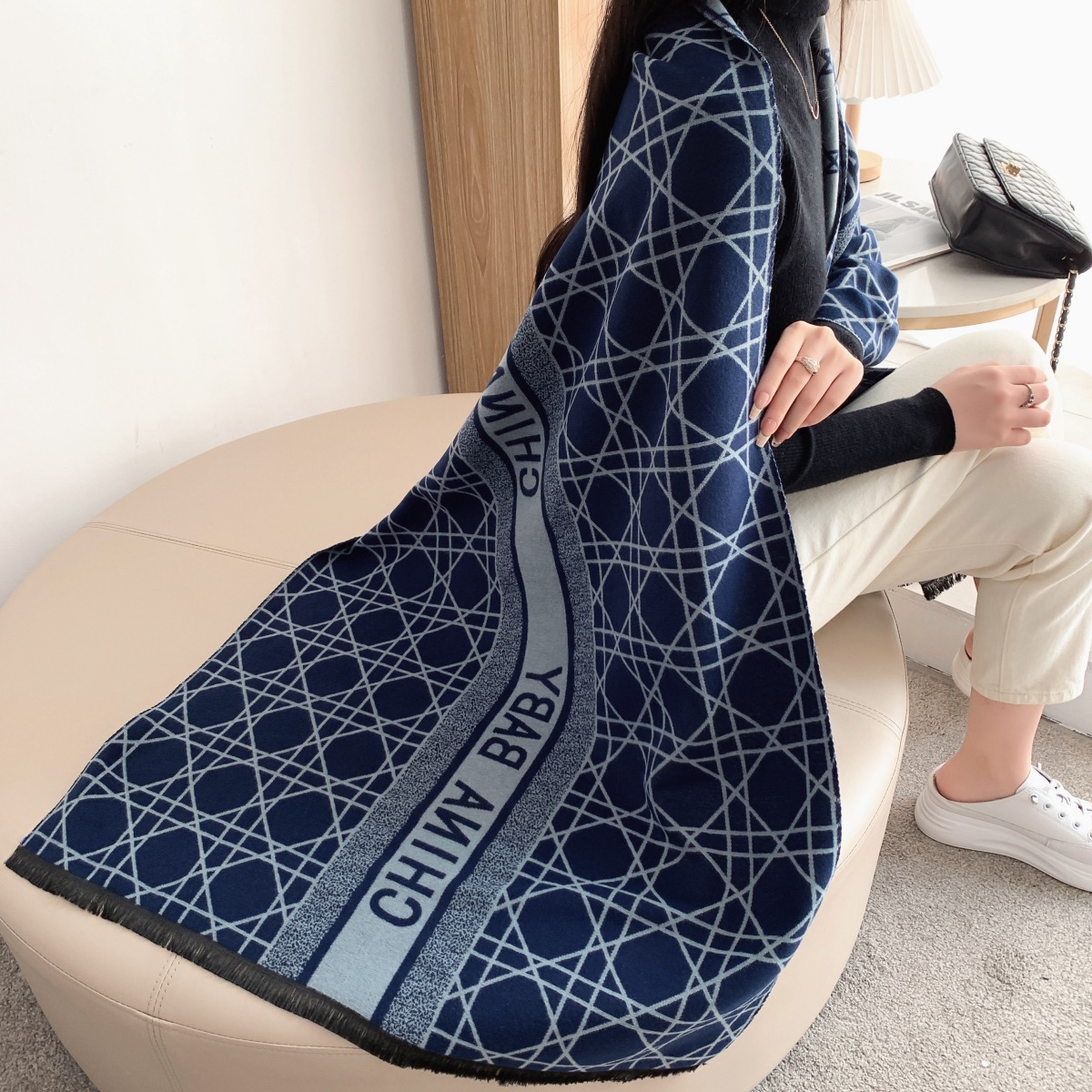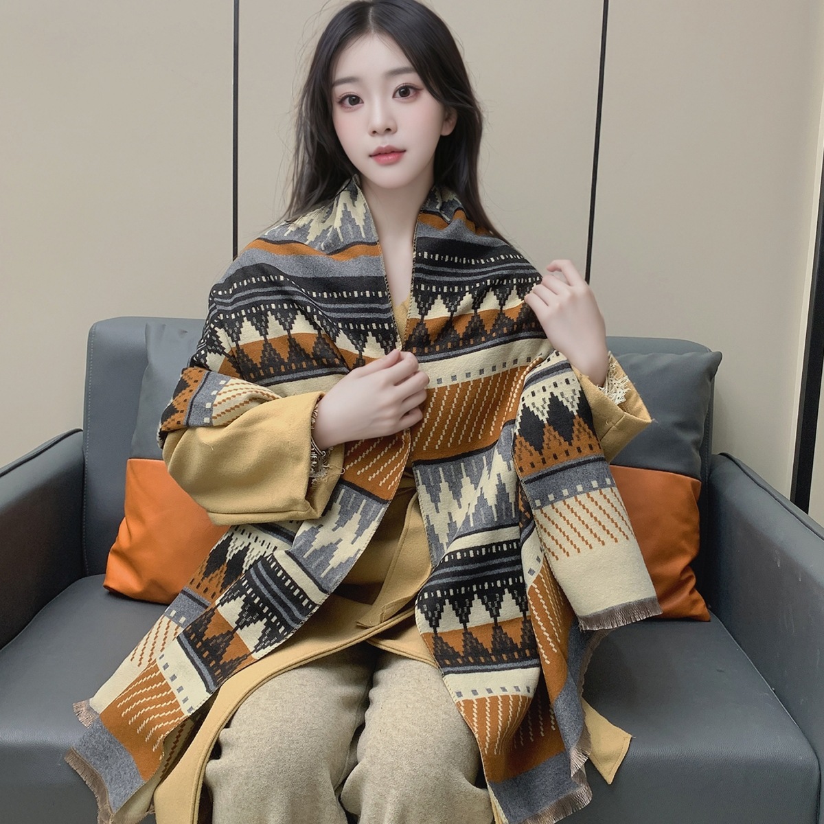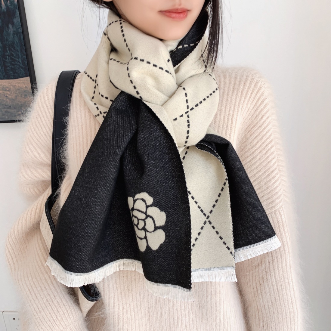 2025 새로운 스카프 여성 겨울 부드럽고 두꺼운 따뜻한 한국 스타일 베이비 격자 무늬 스트라이프 스카프 겸용스토어 가기