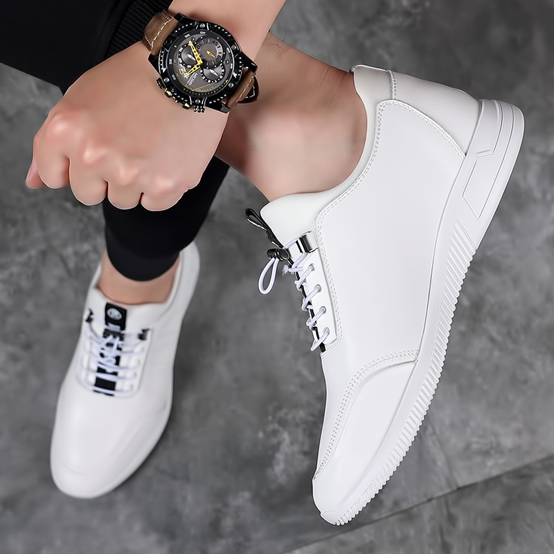 크로스 보더 새로운 가죽 남성 신발 부드러운 밑창 보이지 않는 높이 증가 캐주얼 가죽 신발 8cm 청소년 데이트 흰색 신발 6스토어 가기