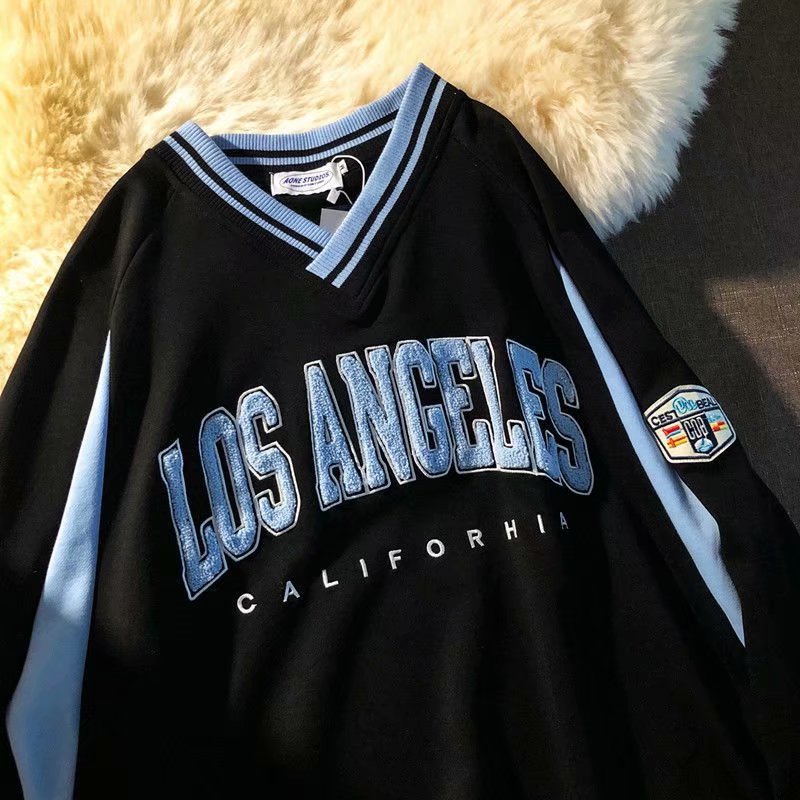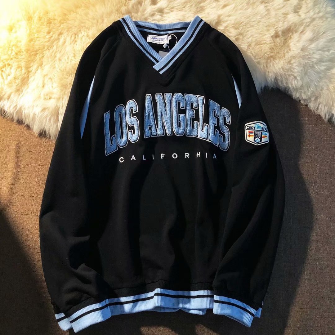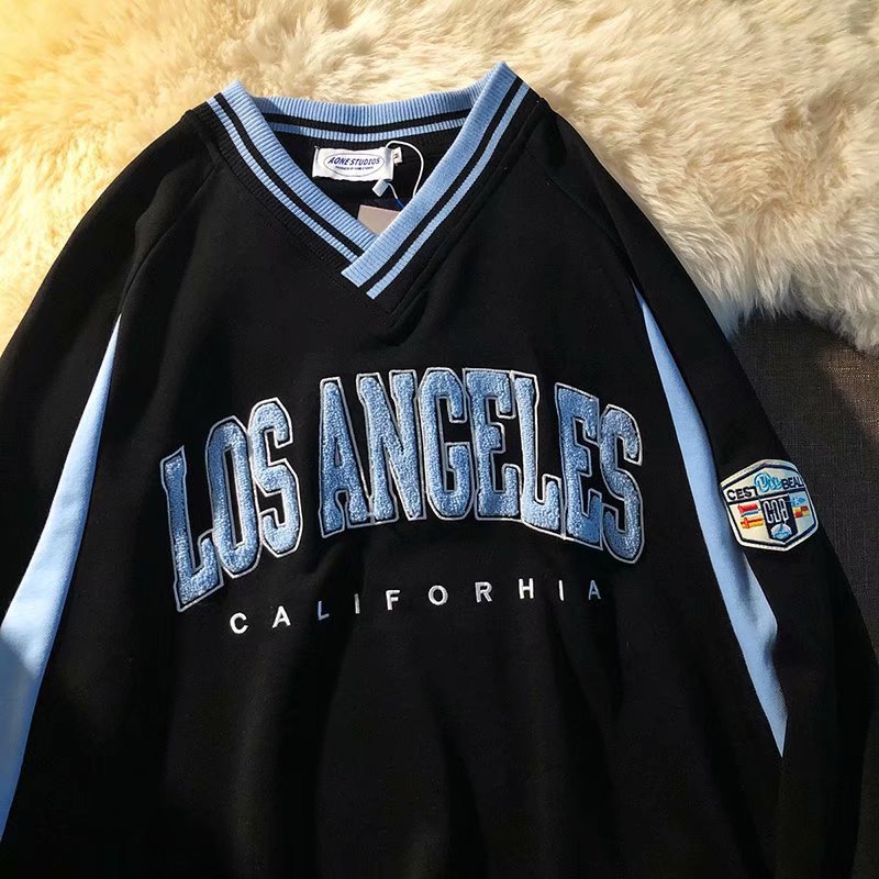 프라이드 스트리트 인스 타 그램 인기 브랜드 아메리칸 스타일 모든 경기 레트로 자수 스웨터 남성용 홍콩 스타일 긴팔 남성용 V 넥 2022 이른 가을 얇은 재킷