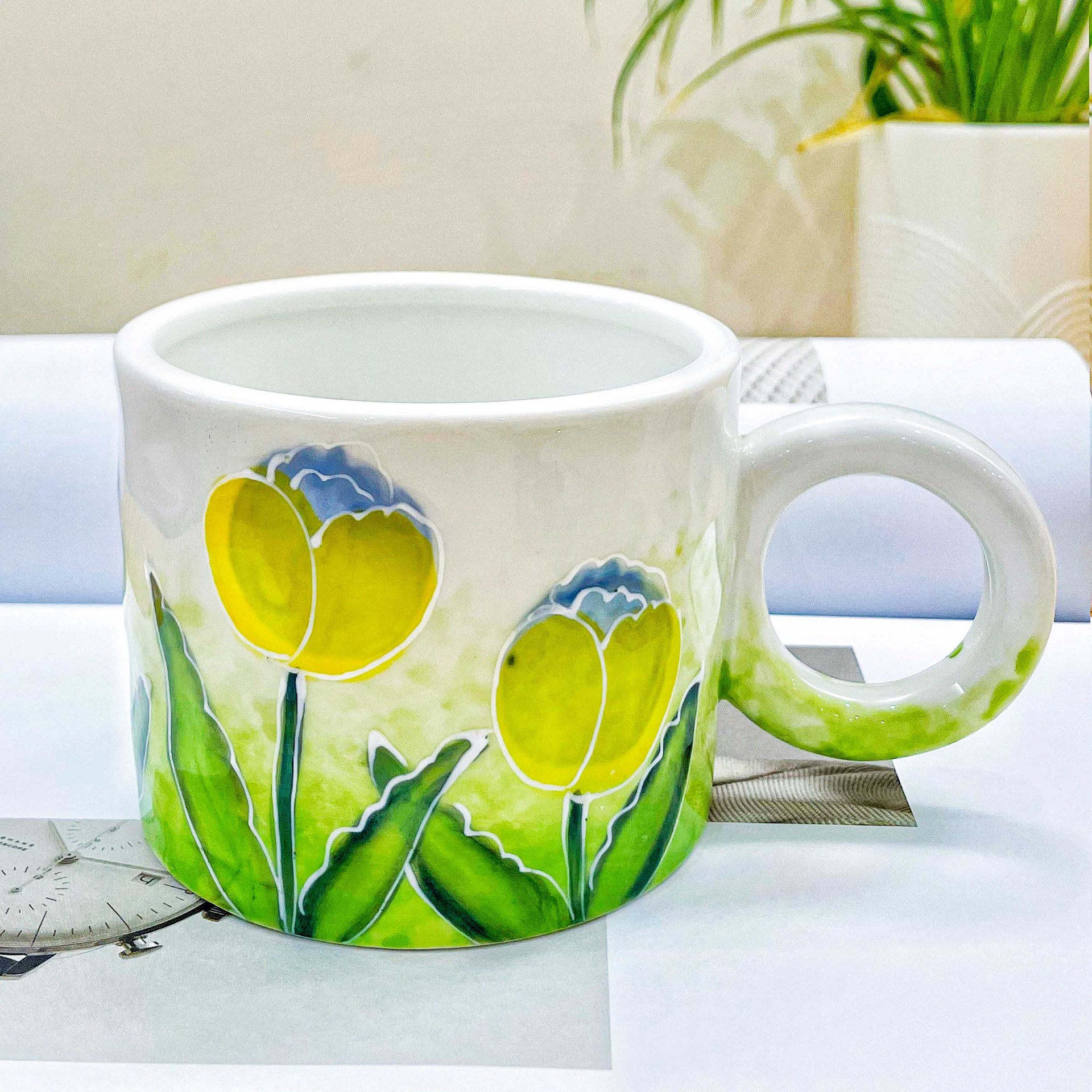 • 아몬드 옐로우 손으로 그린 ​​꽃컵 + 금수저 [튤립 선물 상자]