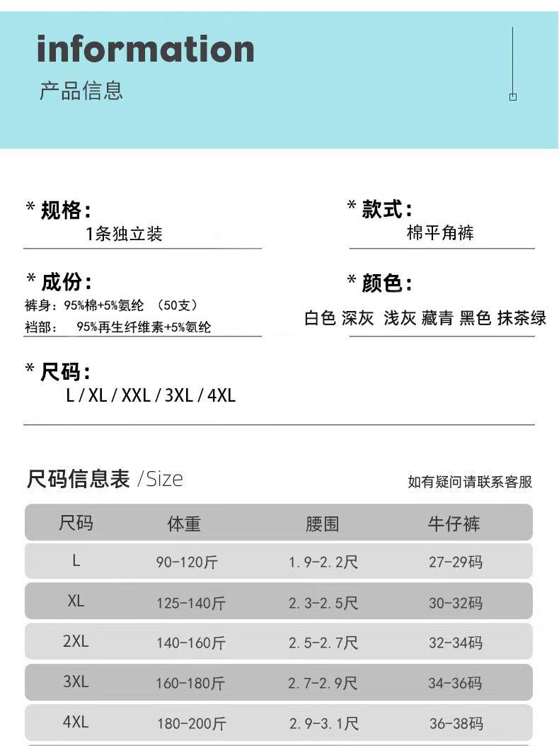 50 흰색 속옷 남자 사각 팬티 코튼 퓨어 화이트 라이트 컬러 복서 반바지 가을과 겨울 청소년 반바지 항균스토어 가기