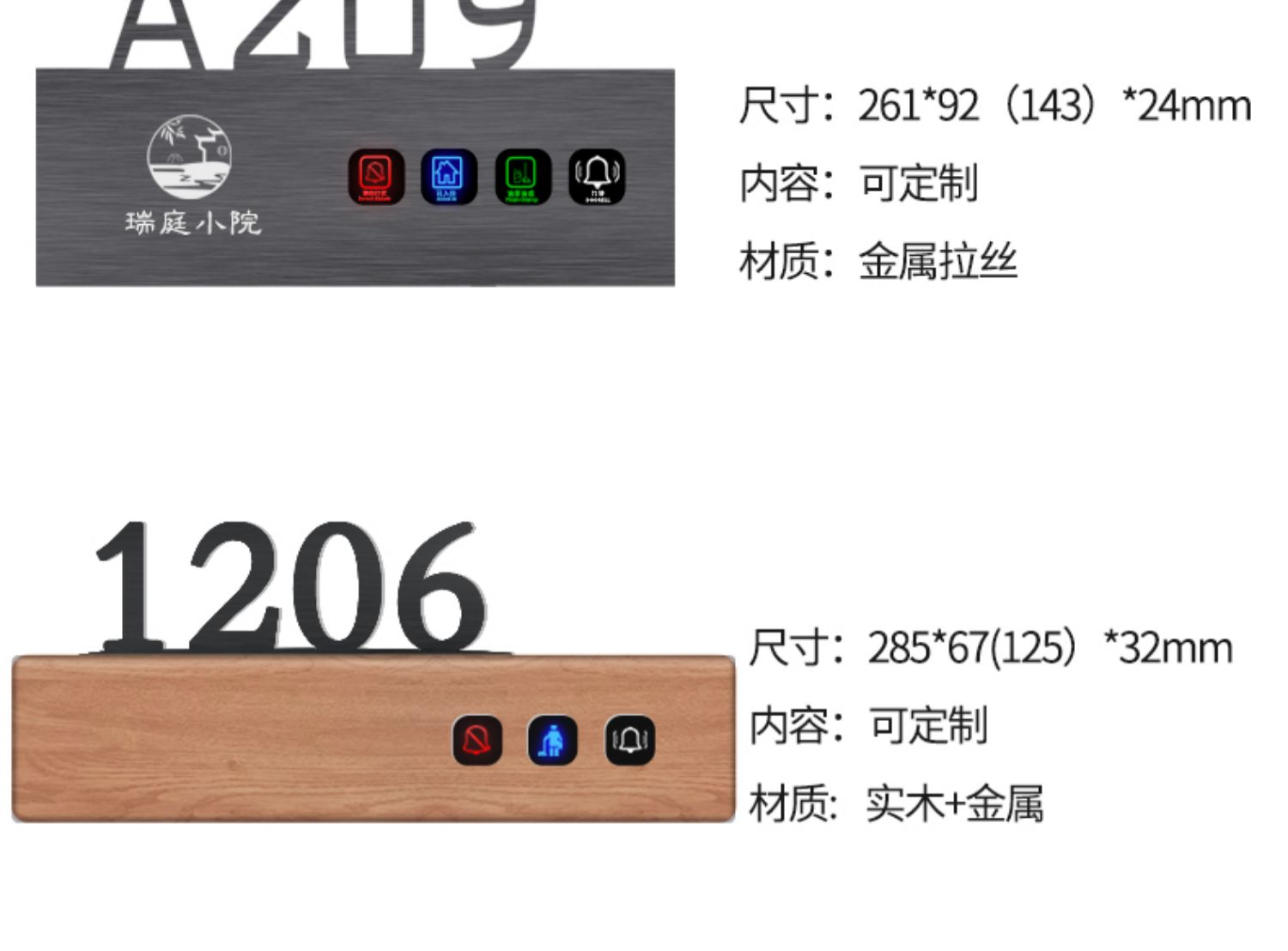 맞춤형 전자 도어 플레이트 호텔 led 전자 도어 플레이트 초인종 경적은 방 번호 도어 플레이트를 방해하지 않습니다스토어 가기