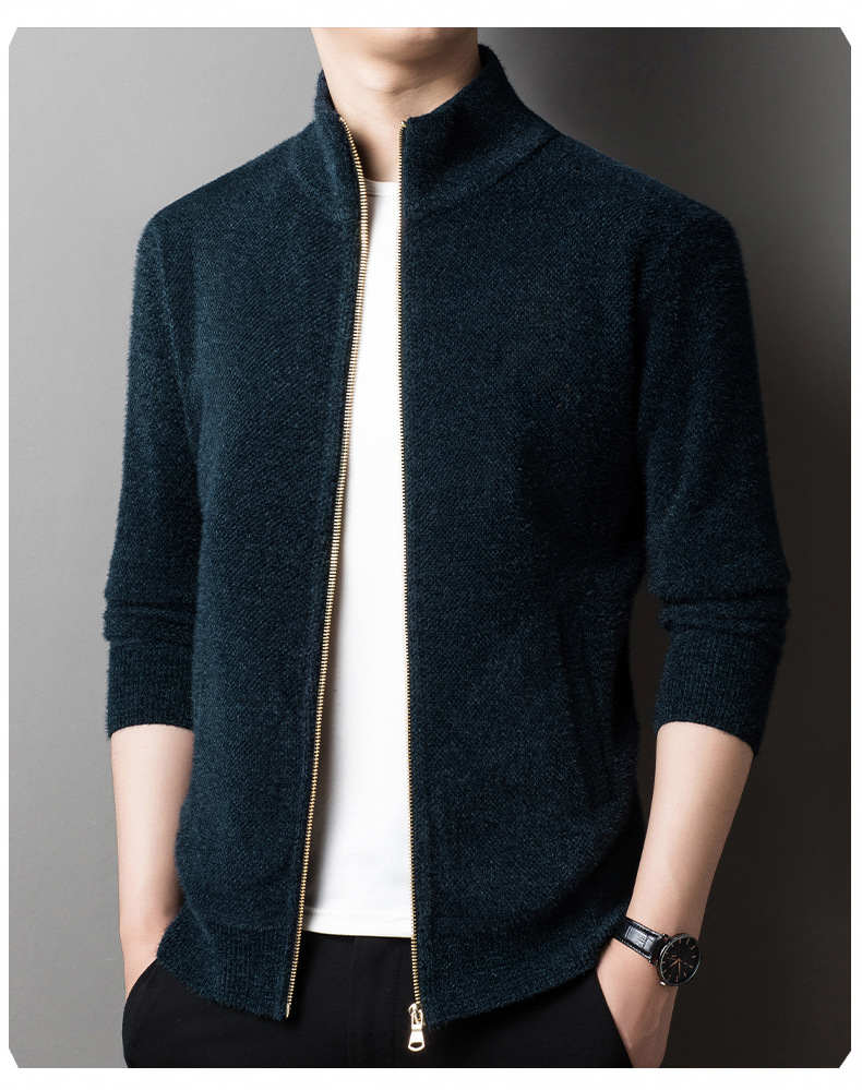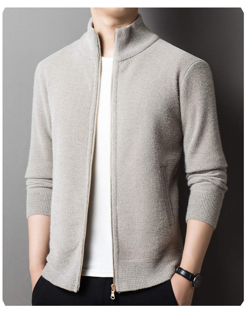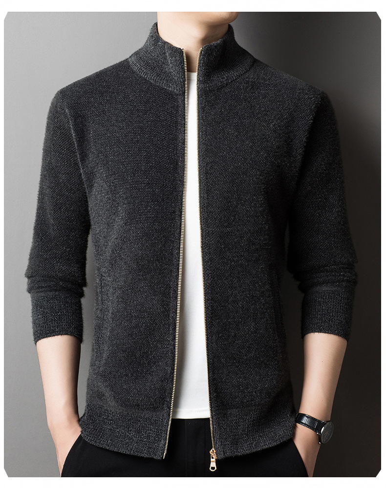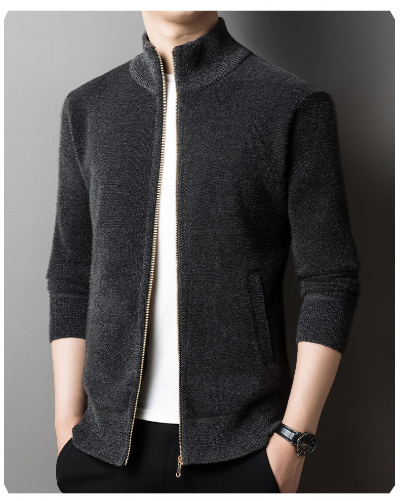 국경 간 남성 가을, 겨울 니트 카디건 캐주얼 스탠드 칼라 스웨터 재킷 패션 젊은 및 중년 한국 스타일 지퍼 스웨터 남성