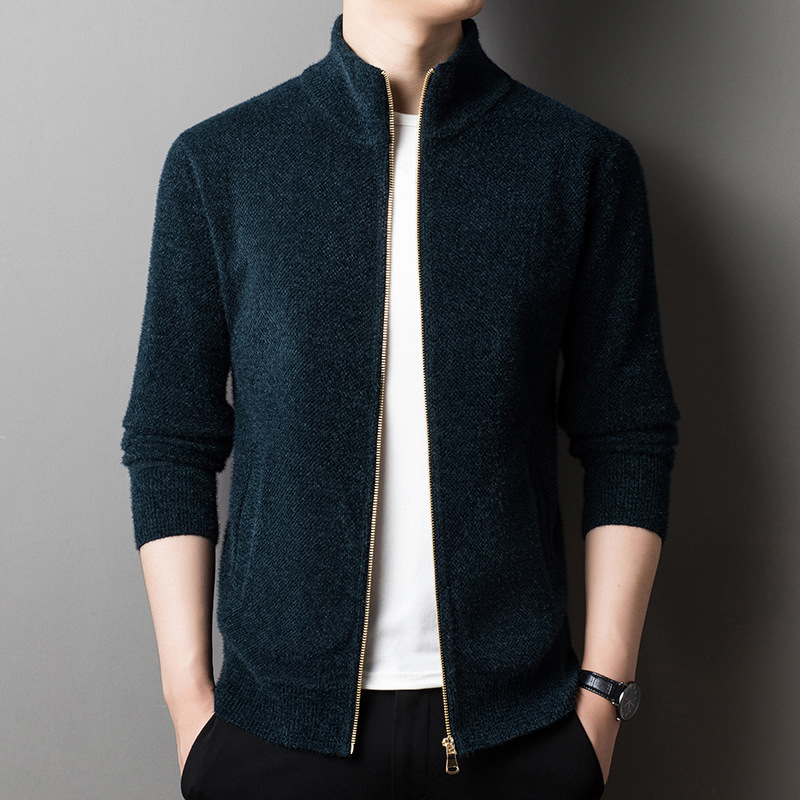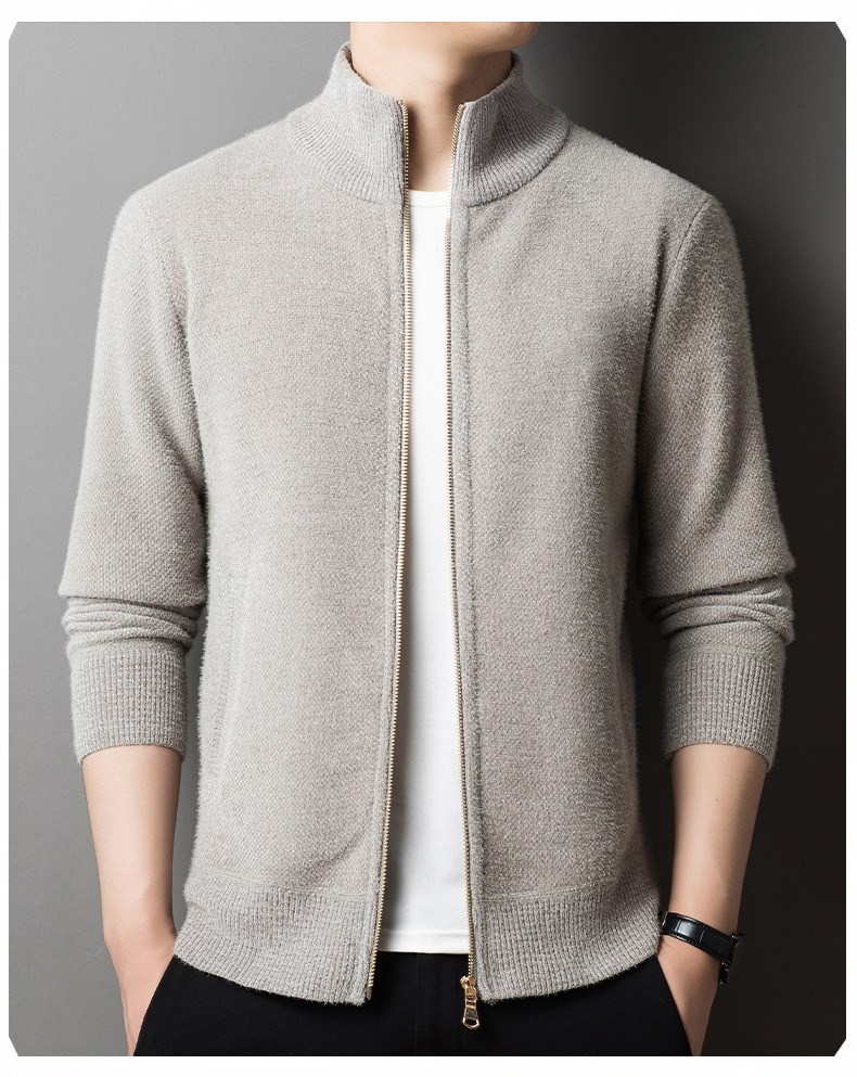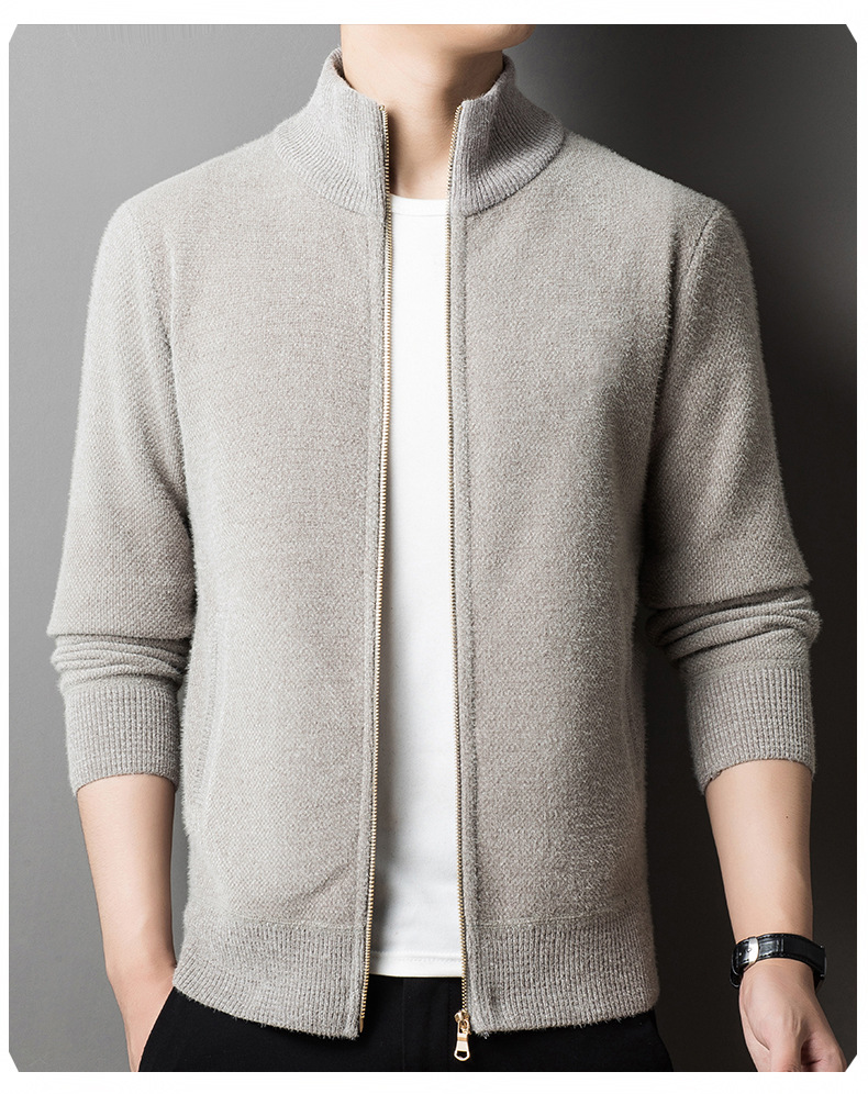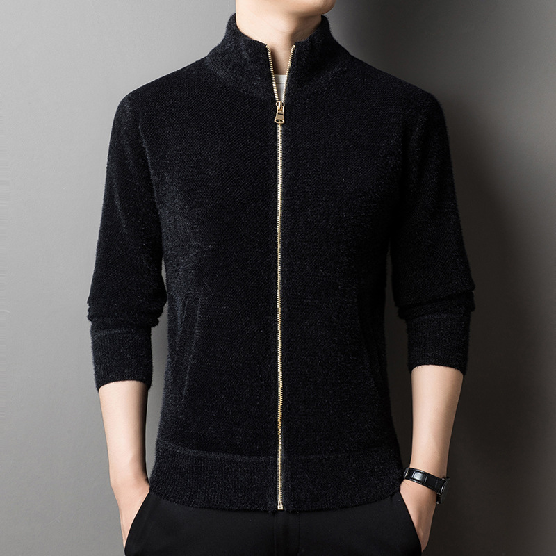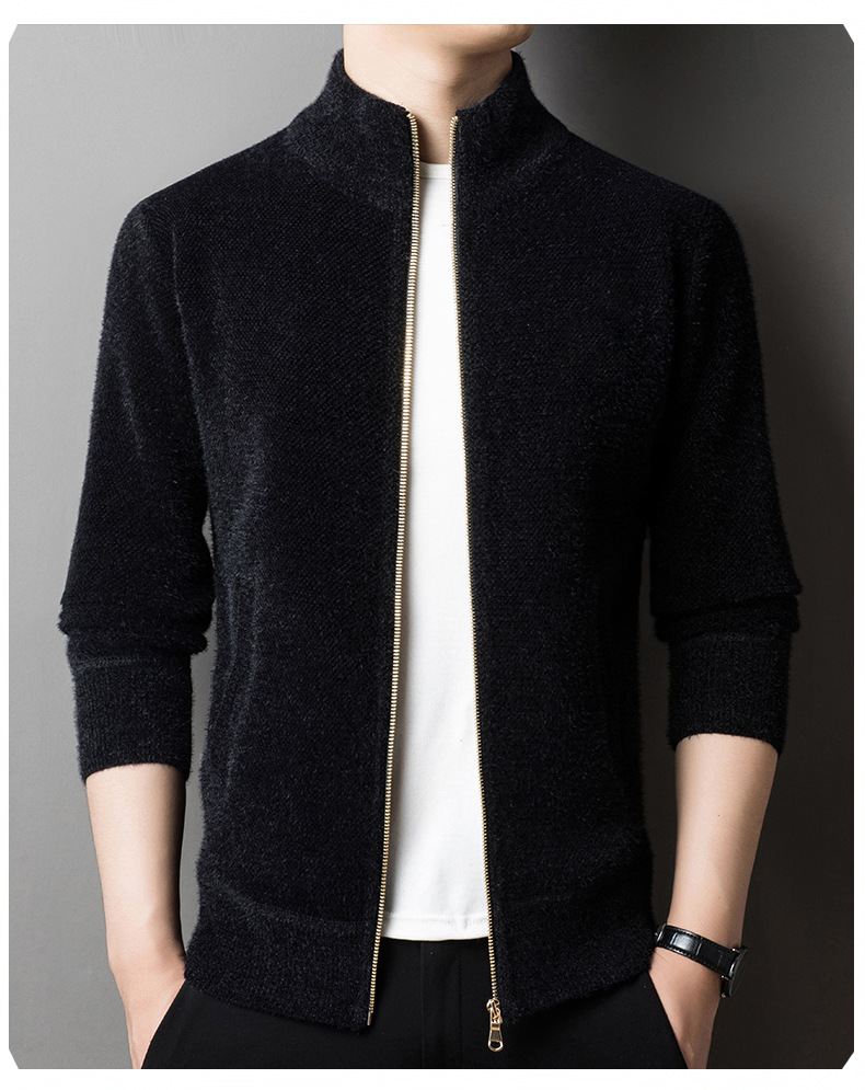 국경 간 남성 가을, 겨울 니트 카디건 캐주얼 스탠드 칼라 스웨터 재킷 패션 젊은 및 중년 한국 스타일 지퍼 스웨터 남성