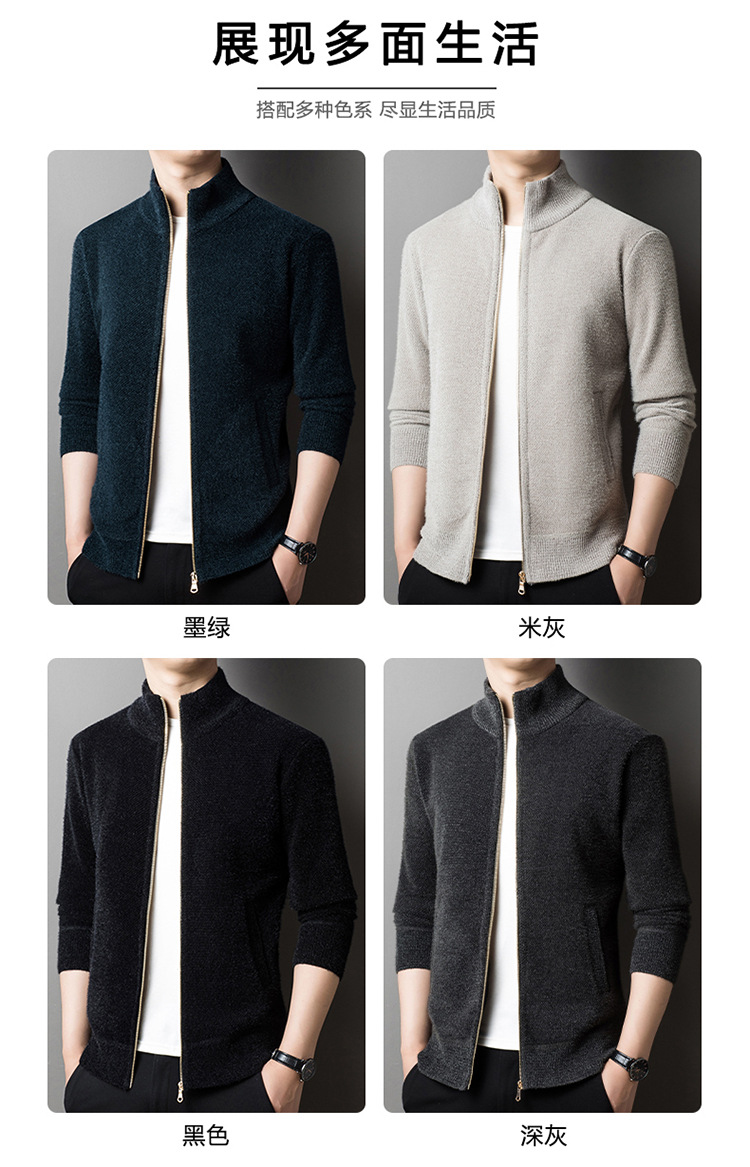 국경 간 남성 가을, 겨울 니트 카디건 캐주얼 스탠드 칼라 스웨터 재킷 패션 젊은 및 중년 한국 스타일 지퍼 스웨터 남성스토어 가기
