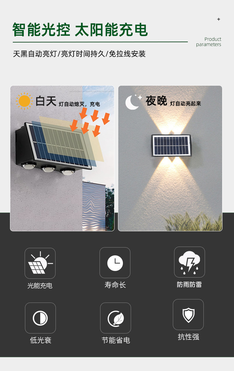태양 벽 빛 야외 가로등 방수 안뜰 빌라 조명 led 홈 분위기 빛 벽 램프