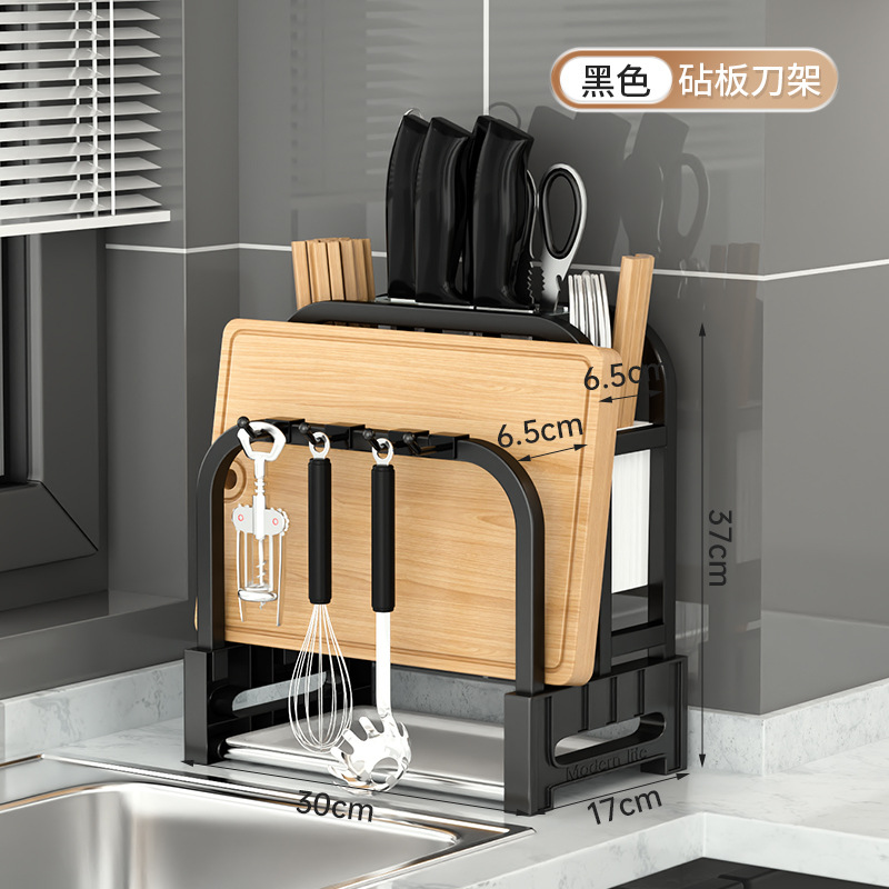 • 313 [검정] 스테인리스 튜브 + 플라스틱 바닥 [공구 홀더 + 이중 젓가락 홀더 + 배수판 + 8 후크]]