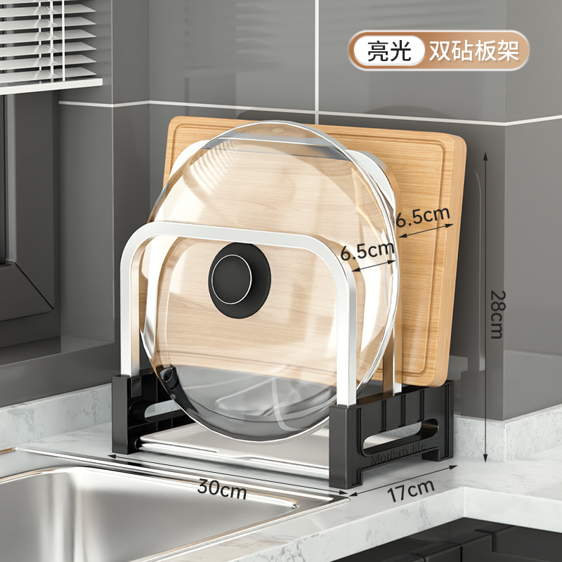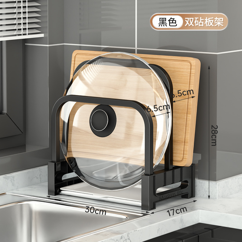 • 314 [블랙] 스테인레스 파이프 + 플라스틱 바닥 더블 도마 랙